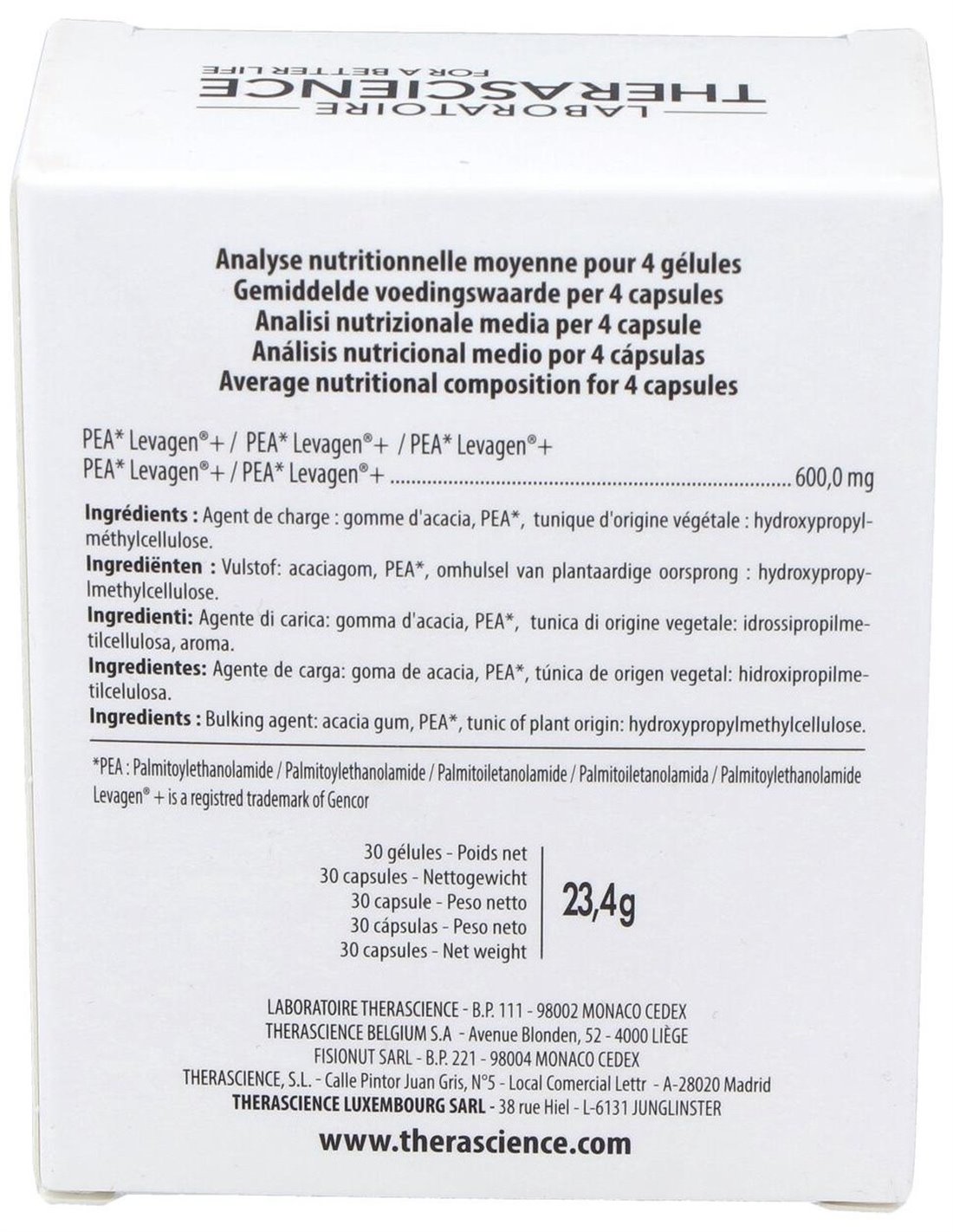 Contiene un compuesto bioactivo natural, la Palmitoiletanolamida, (PEA) producida naturalmente en el organismo por el ácido palmítico de las membranas de los tejidos en respuesta a una lesión o inflamación.