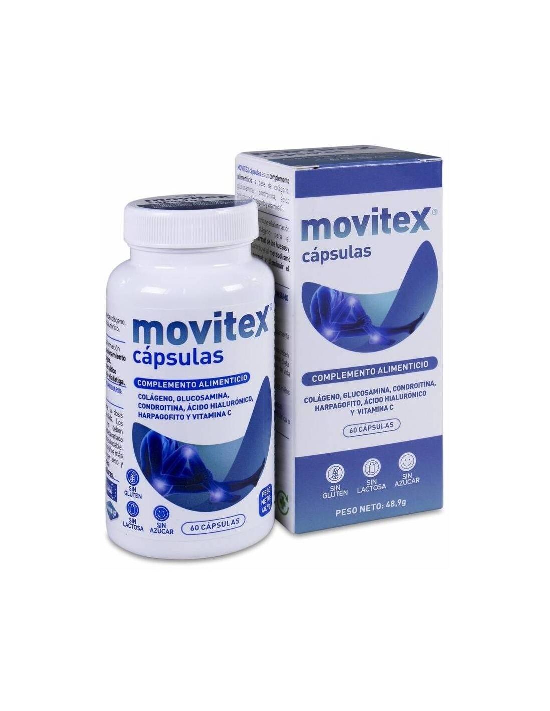 Complemento alimenticio a base de nutrientes que ofrecen apoyo articular como Ácido hialurónico, el cual se encuentra de forma natural en el organismo y actúa como lubricante en las articulaciones, colágeno hidrolizado, harpagofito, manganeso o vitamina C, la cual contribuye a la formación de colágeno para el mantenimiento de tejidos como los cartílagos en condiciones normales. Producto sin gluten ni lactosa.