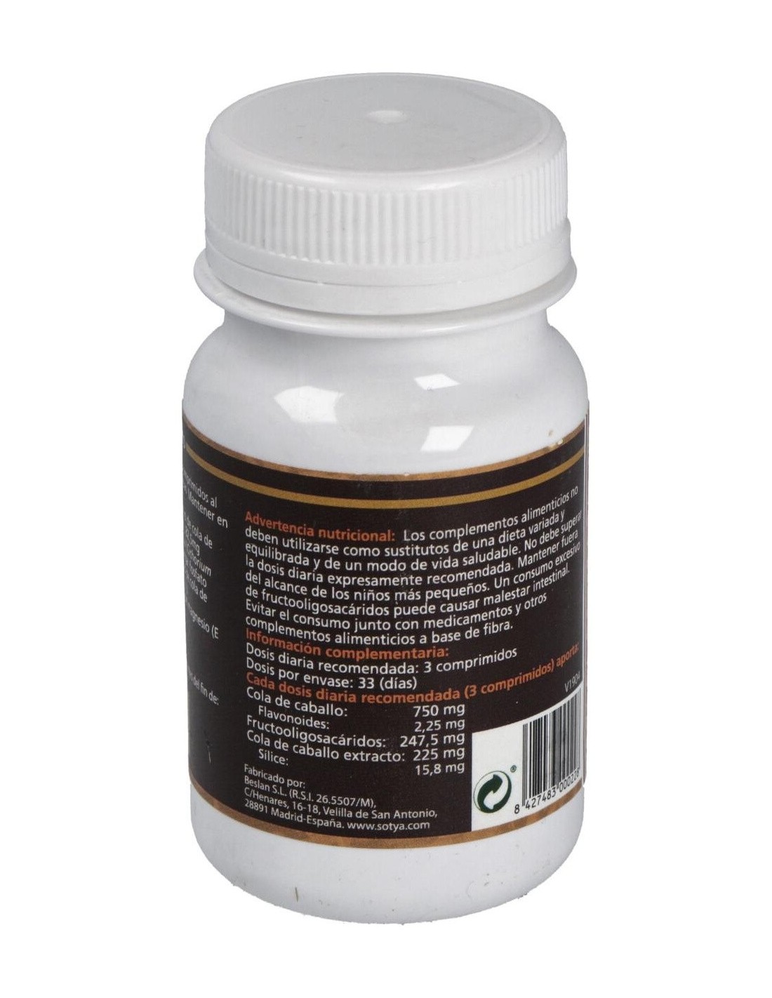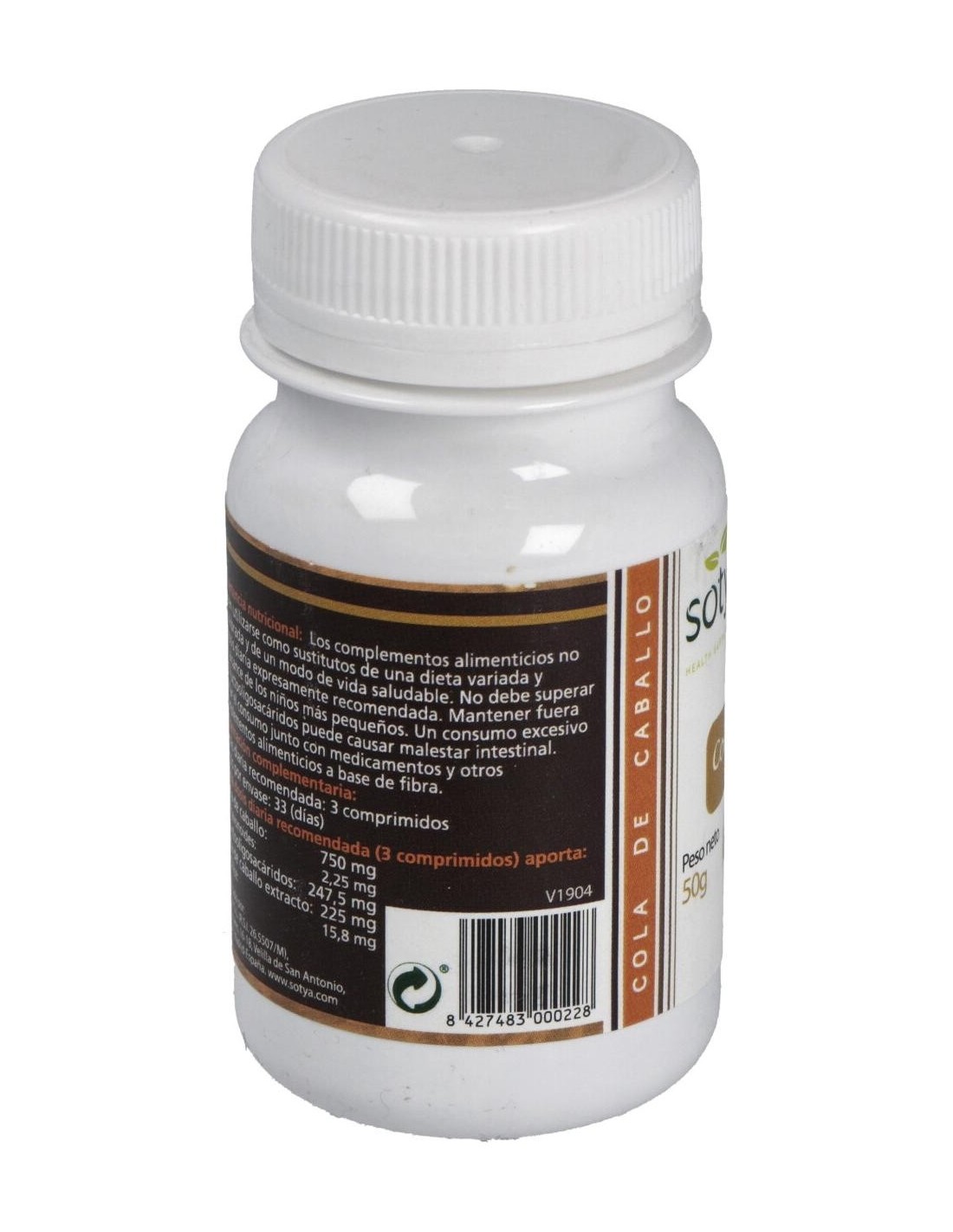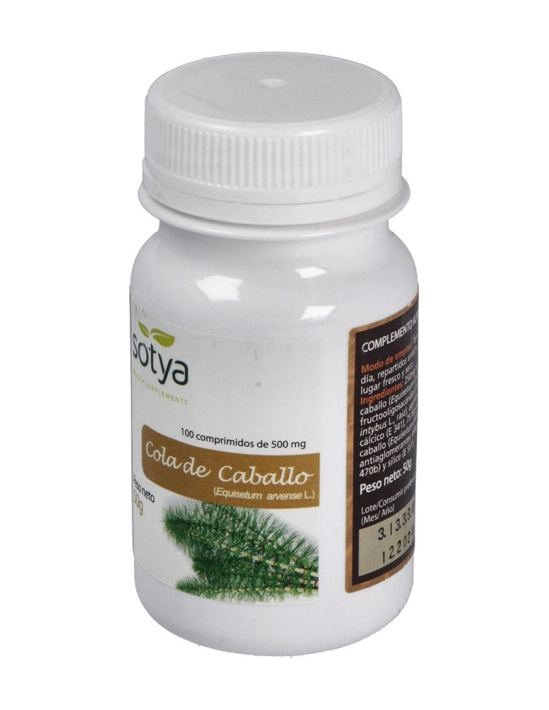 Sotya Cola de Caballo 500mg son unos comprimidos que te aportarán todos los beneficios de la cola de caballo de forma fácil y muy cómoda de consumir. La cola de caballo tiene propiedades diuréticas que te ayudarán en caso de retención de líquidos ya que aumenta la cantidad de orina, con lo que se consigue limpiar el tracto urinario y ayuda en los trasotrnos urinarios leves.