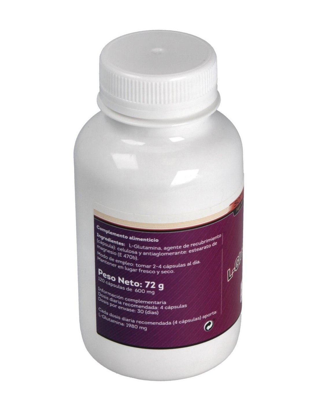 Cada cápsula contiene un 100% de L-glutamina. Cápsula de gelatina.