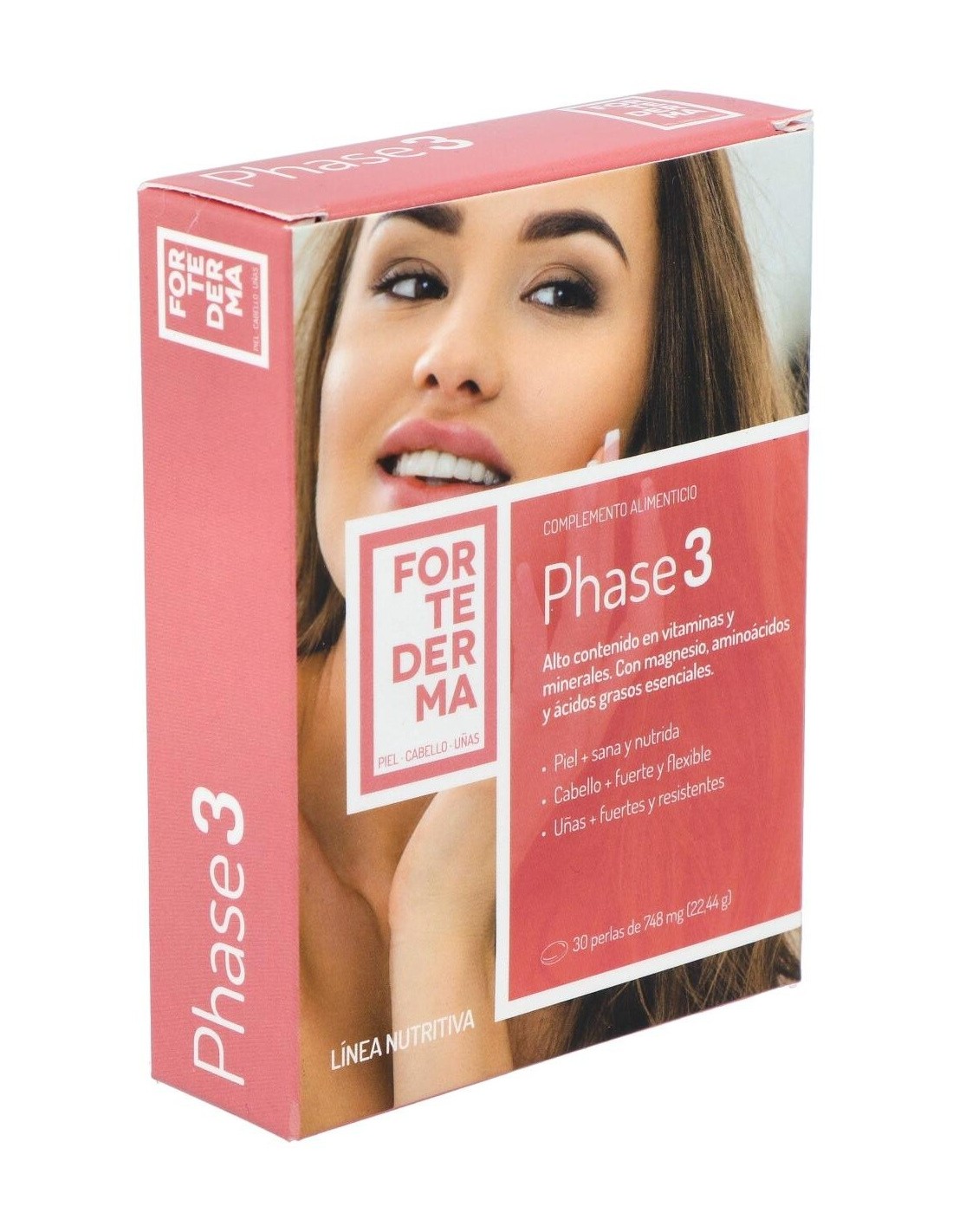 Aceite de pescado (Omega 3) 18% EPA-12% DHA 230 mg (41,4 mg EPA-27,6 mg DHA), Aceite de borraja (Omega 6) 20% GLA 60 mg (12 mg GLA), L-Cistina 50 mg, Vitamina B1 1,1 mg, Vitamina B2 1,4 mg , Vitamina B3 16 mg, Vitamina B5 (calcio pantotenato) 6,0 mg 9, Vitamina B6 1,4 mg, Vitamina B8 (Biotina) 50 mcg, Vitamina B9 (ácido fólico) 200 mcg, Vitamina B12 2,5 mcg, Vitamina C 80 mg, Vitamina E 6 mg, Hierro 6,7 mg, Zinc 5 mg, Magnesio 3 mg.