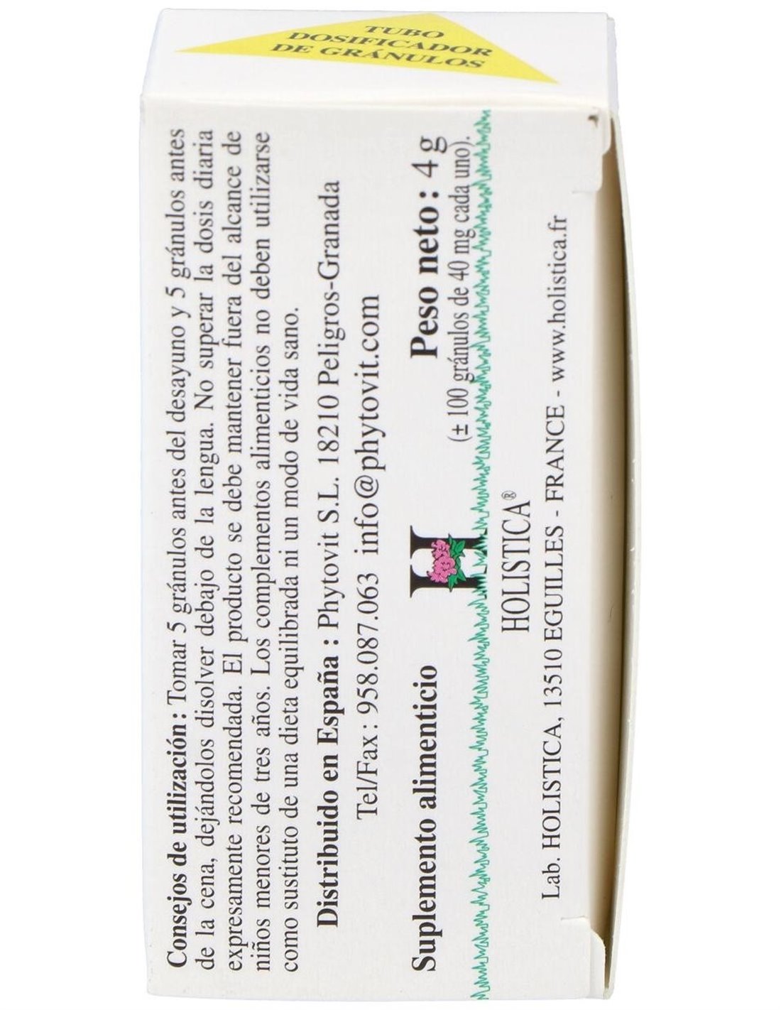 Poner los gránulos debajo de la lengua y dejarlos disolverse. Tomar 5 gránulos en el desayuno, 5 en comida y 5 en la cena.