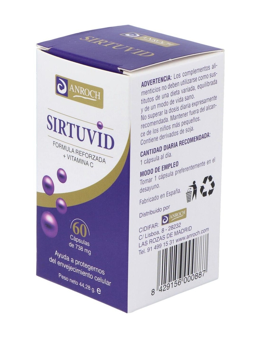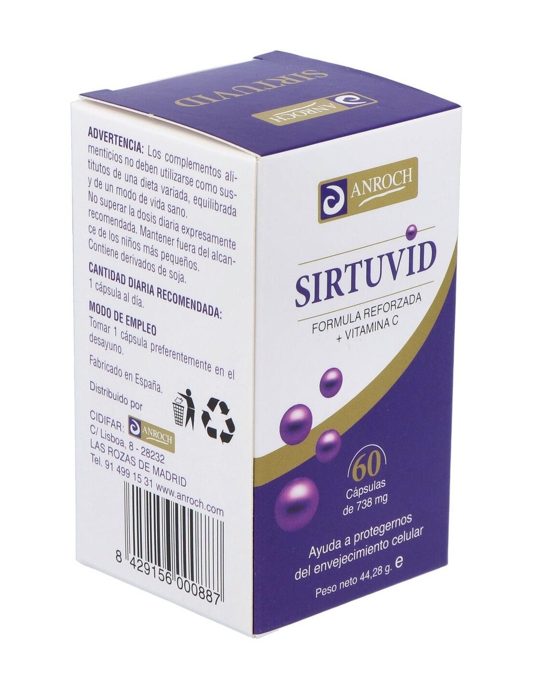 Complemento alimenticio que ayuda a la protección frente al envejecimiento celular, contribuyendo a la protección de las células frente al daño oxidativo. Formulado a base de ingredientes que actúan de forma positiva como antioxidante, rejuvenecedor que ayuda ante síntomas de envejecimiento. Contiene Resveratrol, Coenzima Q10, Ácido alfa lipoico y Vitamina E entre otros. Se recomienda en los síntomas que acompañan al síndrome de fatiga crónica física y mental, y en los síntomas de la fibromialgia. Formato 60 cápsulas.