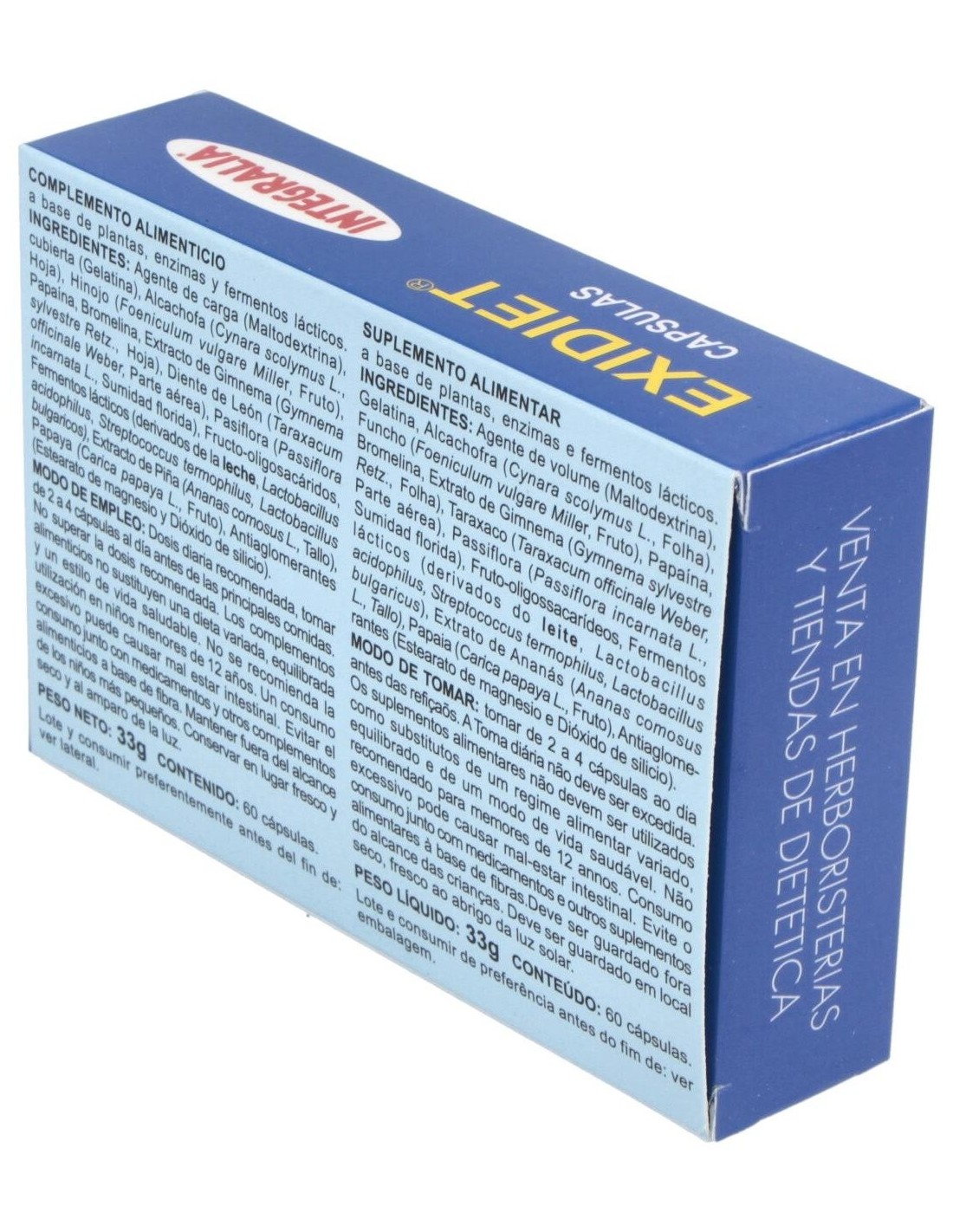 Exidiet Vientre Plano de Integralia es un suplemento dietético idóneo para las personas que quieren bajar de peso y minimizar el volumen del vientre. El producto protege el sistema digestivo de manera natural y completa. Proporciona sensación de saciedad, evitando el exceso de alimentos, de manera que ayuda a minimizar la productividad de acidez y gases.