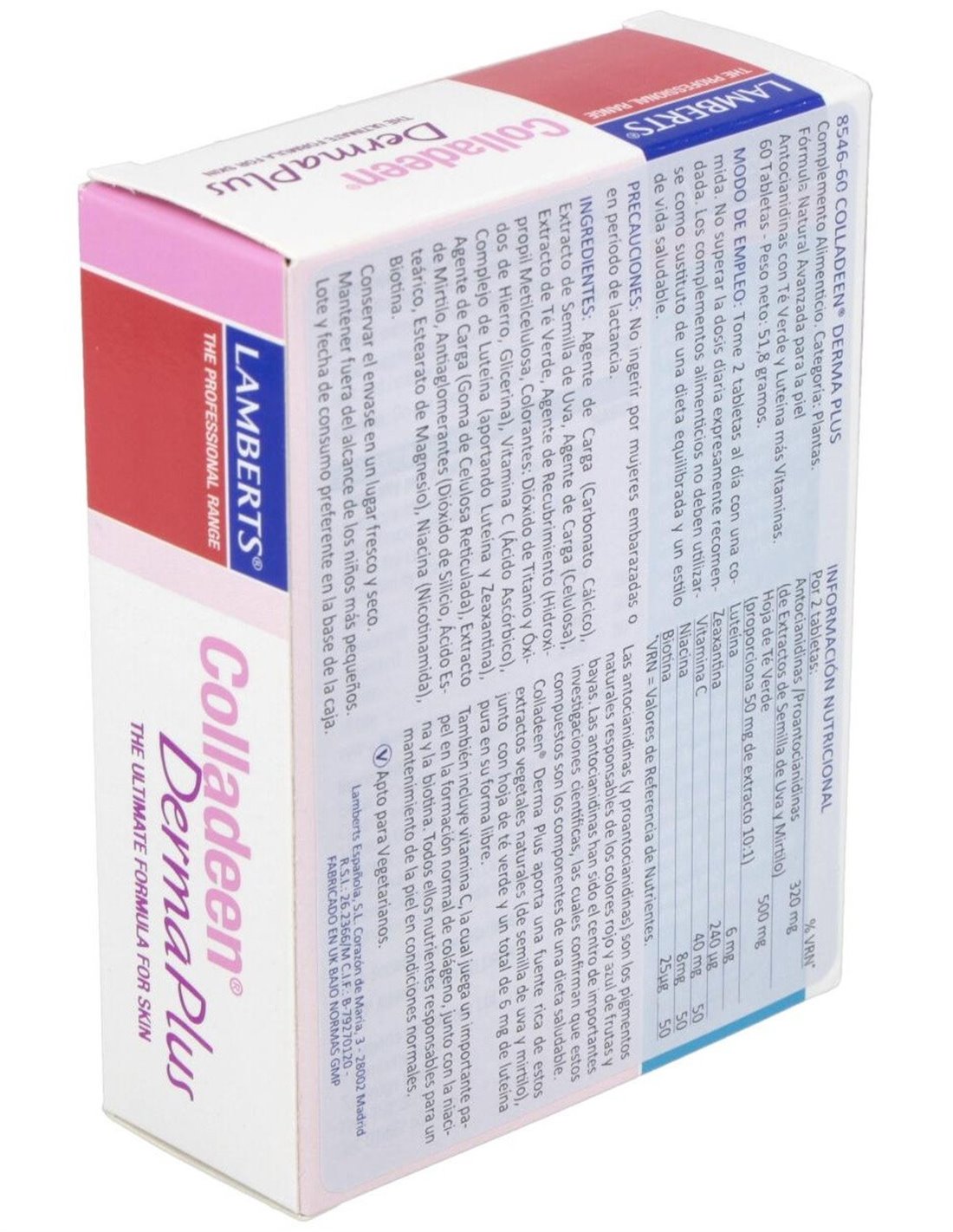 Proporciona una fuente particularmente rica de estos extractos de plantas de origen natural (a partir de semillas de uva y mirtilo), junto con la hoja de té verde y un total de 6 mg de luteína pura en forma libre. Útil como parte de un programa de cuidado de la piel. Apto para veganos y vegetarianos.