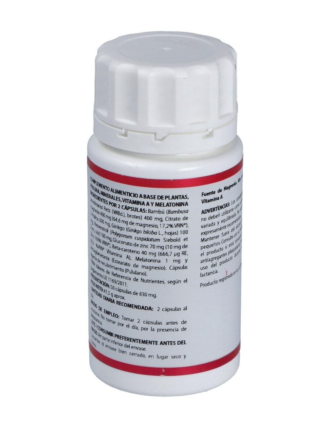 BAMBÚ. CITRATO DE MAGNESIO. L-PROLINA. GINKGO. RESVERATROL. GLUCONATO DE ZINC. BETA-CAROTENO. MELATONINA. ESTEARATO DE MAGNESIO.