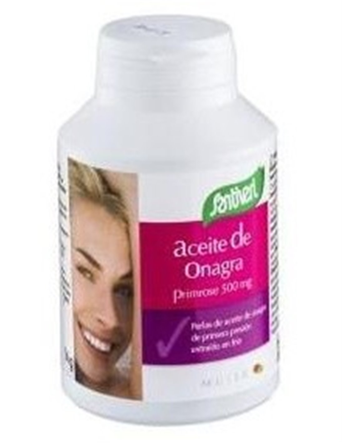 Complemento alimenticio aceite de onagra que aporta ácidos grasos poliinsaturados que contribuyen al bienestar durante la menstruación y ayudan a mantener el buen estado de la piel y vitamina E.