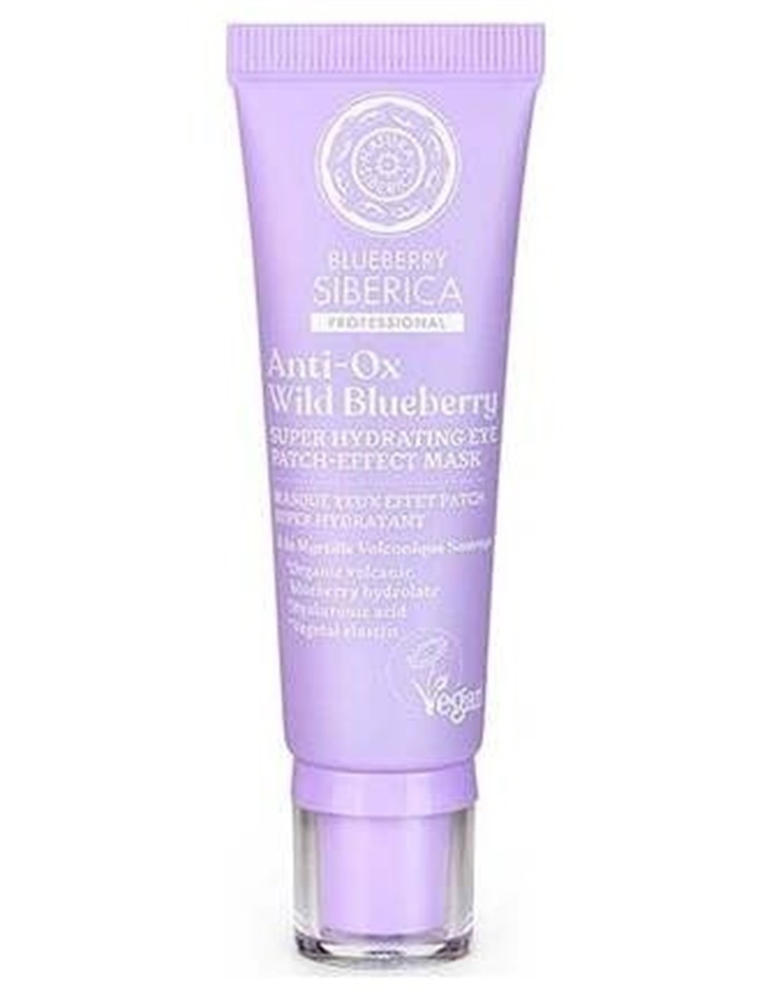 NATURA SIBERICAEsta mascarilla para el contorno de los ojos hidrata, refresca, elimina los signos de fatiga y alivia la hinchazón y las ojeras. El ácido hialurónico es un poderoso hidratante para la piel y previene la aparición de finas arrugas. La elastina vegetal mejora la firmeza y elasticidad de la piel y mantiene su tono. El hidrolato de arándano negro elimina los signos de cansancio. Cosmético vegano.
