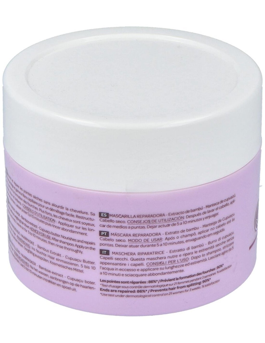 Nutre y repara las puntas secas sin apelmazar el cabello. Su fórmula, enriquecida con extracto de bambú y manteca de cupuazú, protege y envuelve la fibra capilar para facilitar el peinado. Sus propiedades restructurantes previenen la rotura. Con su uso, el cabello está más fuerte, sedoso, suave, flexible y brillante.