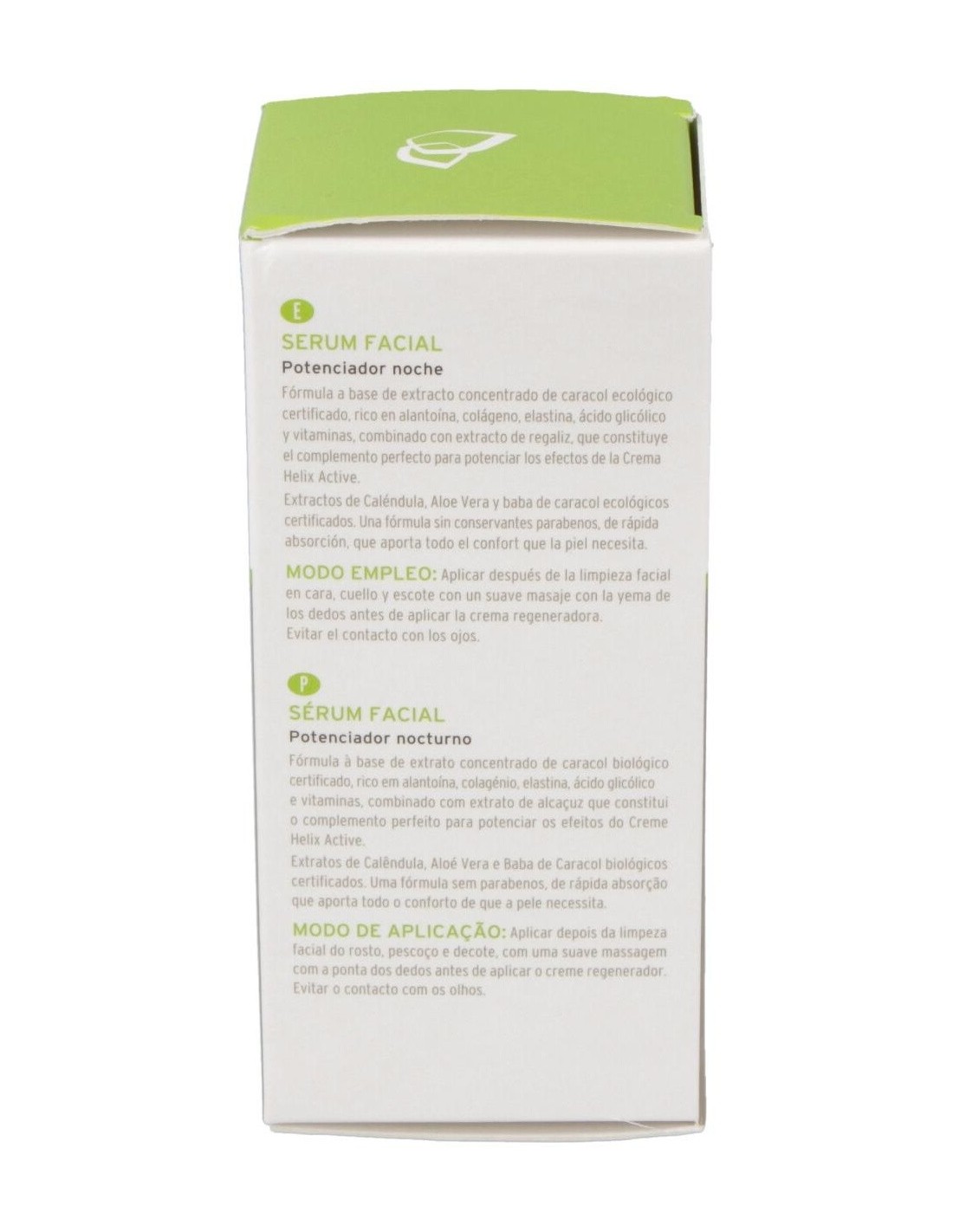 Fórmula a base de extracto concentrado de caracol ecológico certificado, rico en alantoína, colágeno, elastina, ácido glicólico y vitaminas, combinado con extracto de regaliz, que constituye el complemento perfecto para potenciar los efectos de la Crema Helix Active.