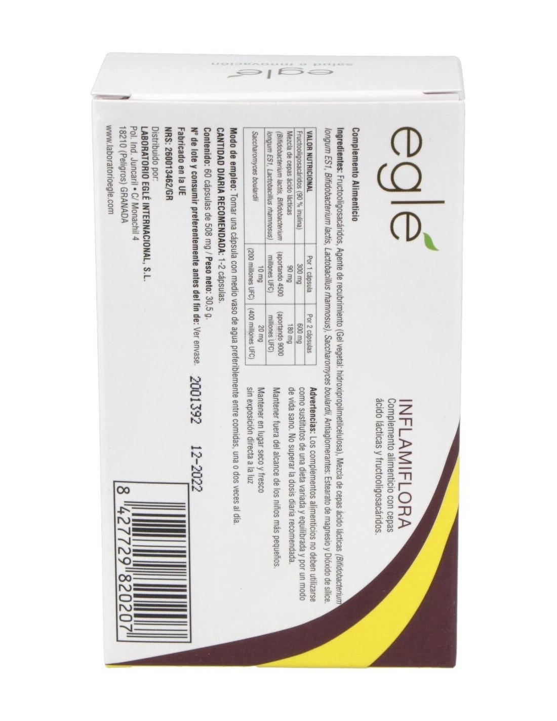 4.500 millones de UFC (mezcla de cepas ácido lácticas: Bifidobacterium breve, Bifidobacterium lactis, Bifidobacterium longum, Lactobacillus rhamnosus, Lactobacillus paracasei).