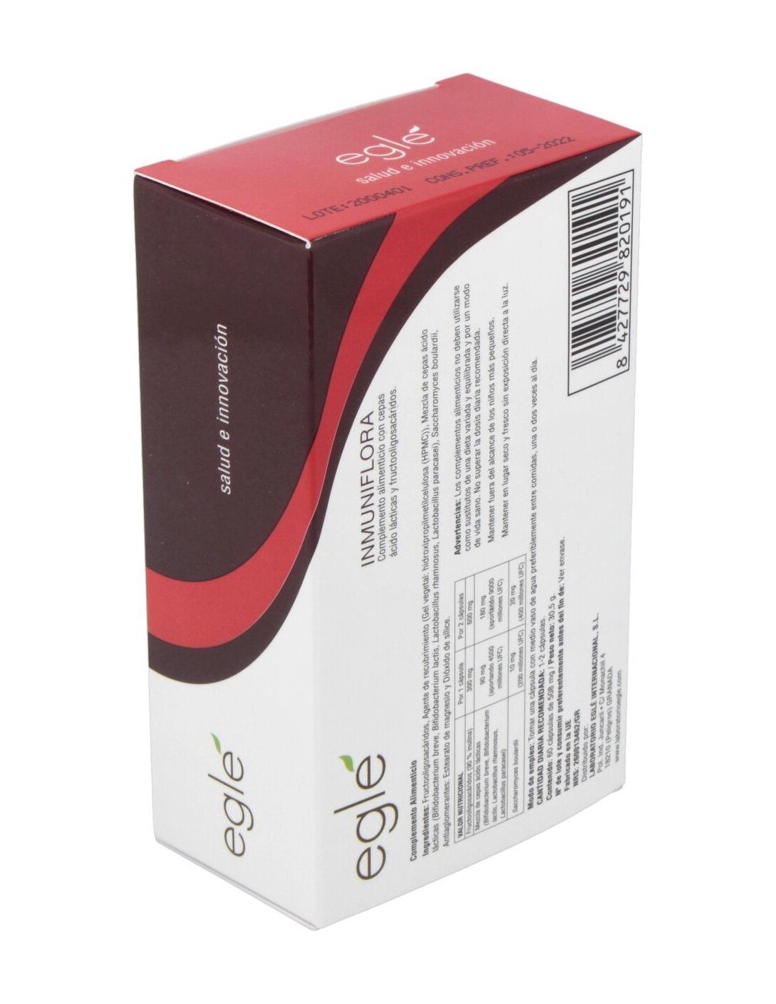 Complemento alimenticio que contiene cuatro cepas probióticas: Bifidobacterium longum ES1, Bifidobacterium lactis, actobacillus rhamnosus y saccharomyces boulardii.
