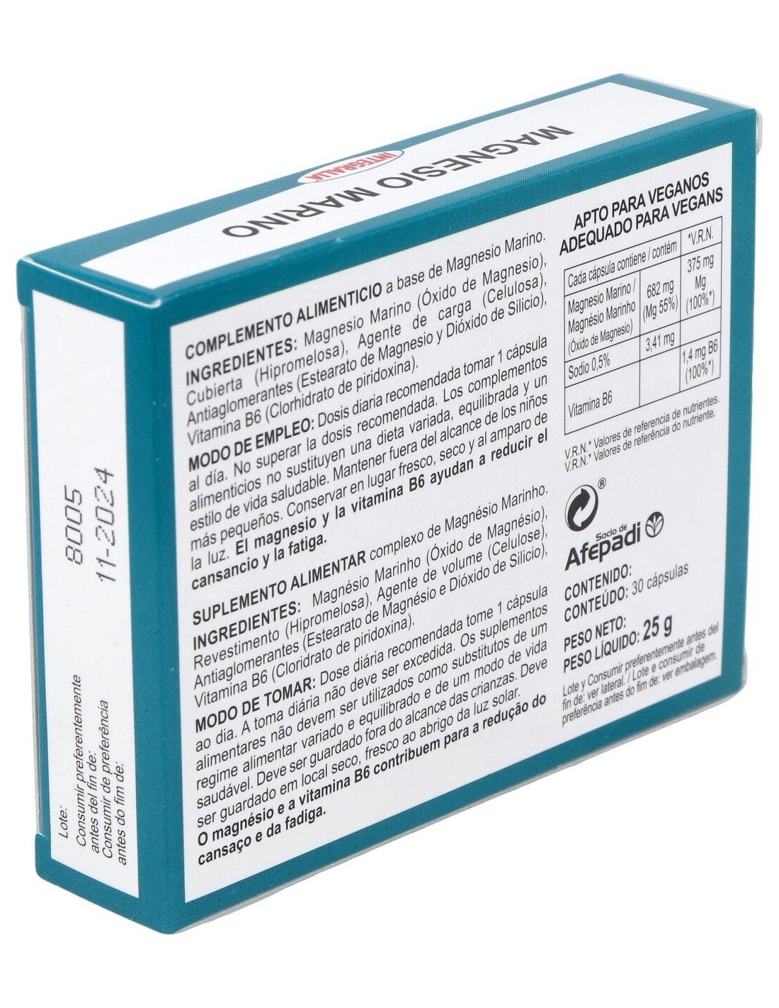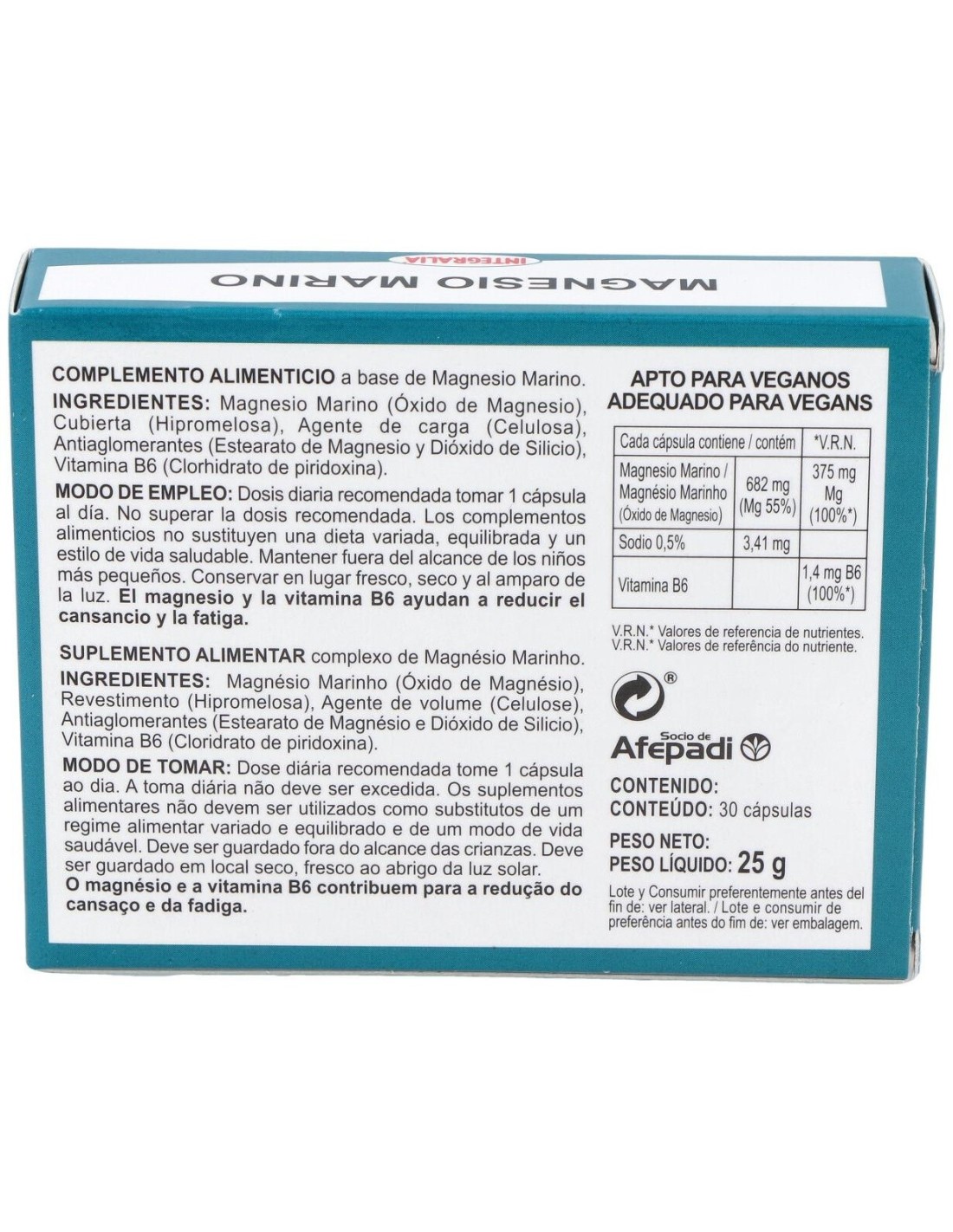 Magnesio Marino ...................682 mg ( 55% de Magnesio).
