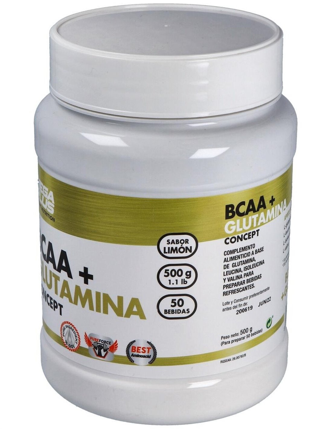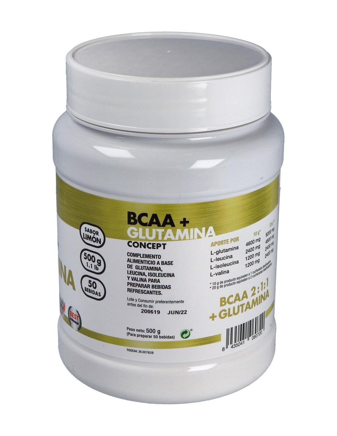 BCAA+GLUTAMINA CONCEPT limon 500gr. de MEGA PLUS