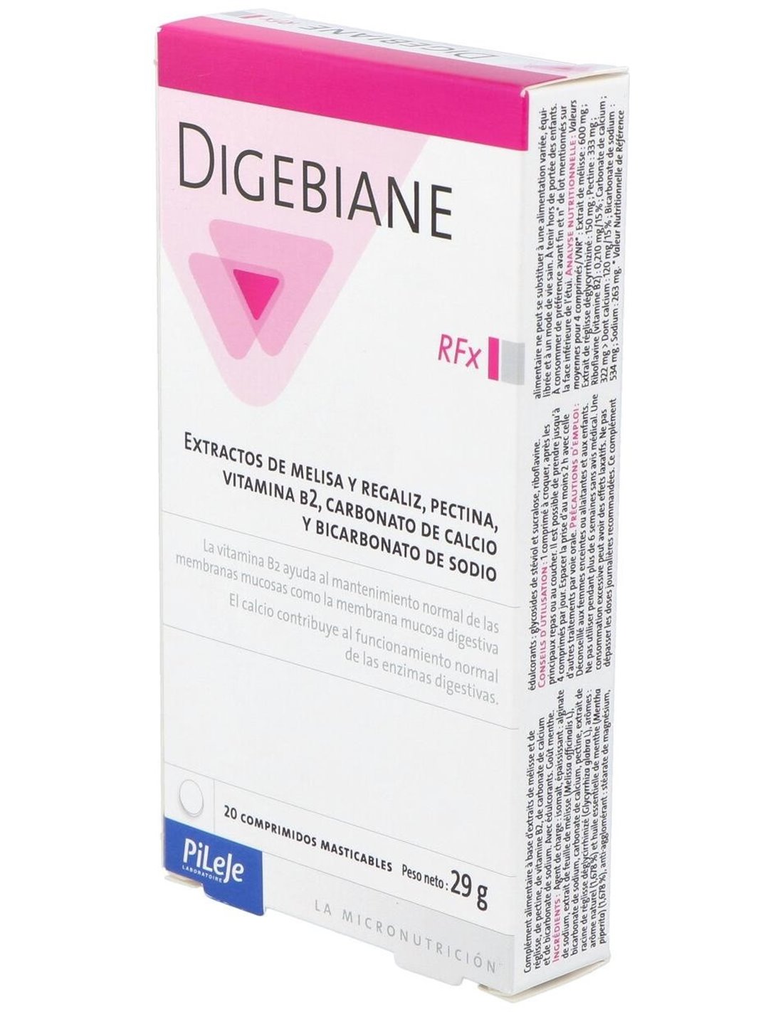 Solución alternativa para ayudar a una digestión normal: La vitamina B2 contribuye al mantenimiento de las mucosas normales, como la mucosa digestiva. El calcio contribuye al funcionamiento normal de las enzimas digestivas. Sabor a menta.