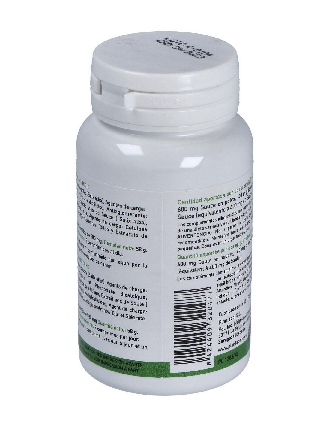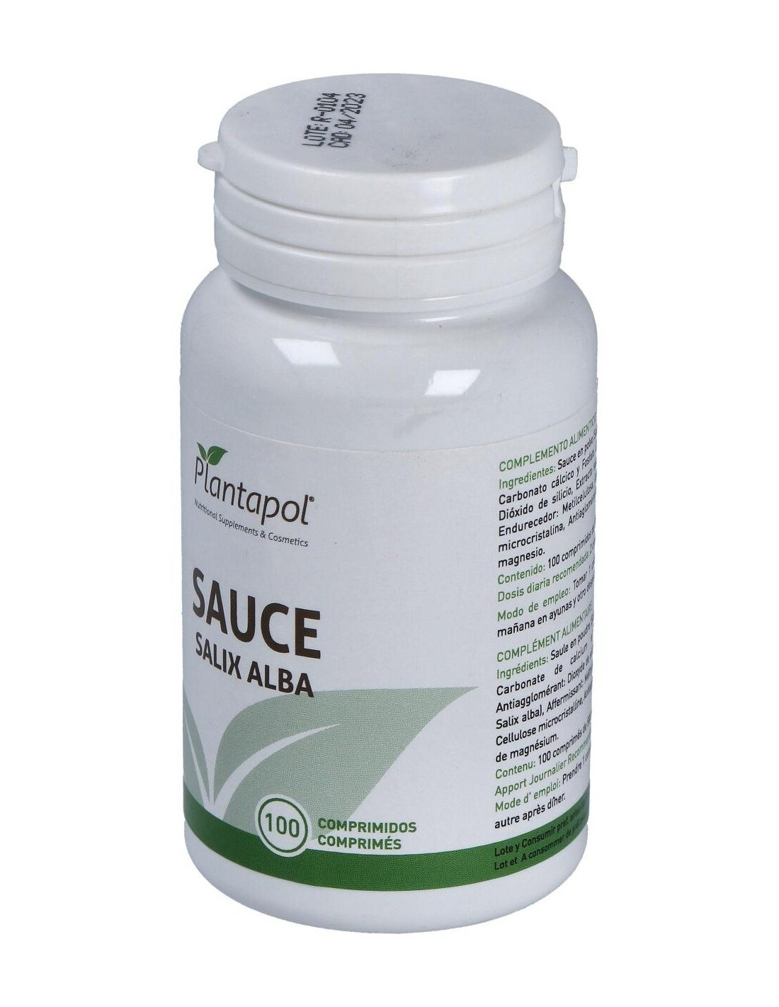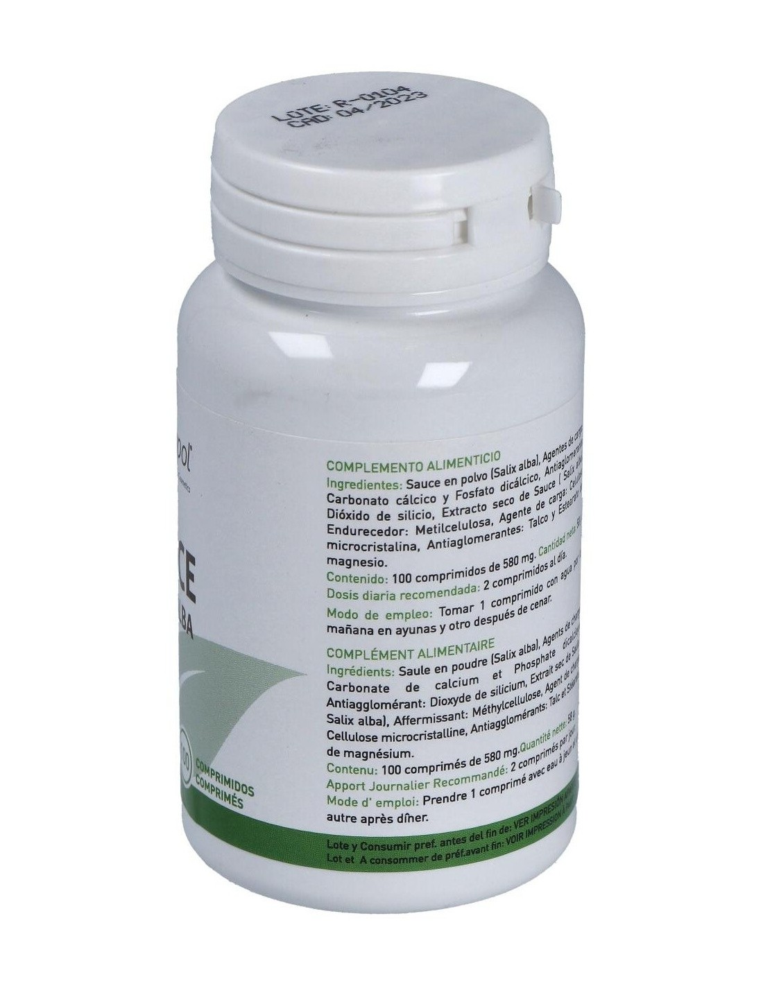 Sauce polvo 800 mg (600 mg de sauce), Extracto seco de sauce 40 mg (equivalente a 200 mg de sauce polvo). Carbonato de Calcio, Fosfato de calcio, Metilcelulosa, Dióxido de silicio, Talco.