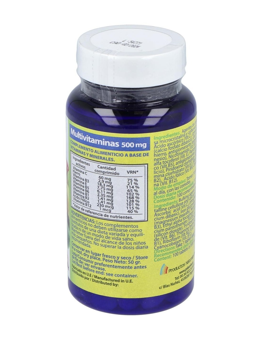 Multivitaminas 500Miligramos 100 Comprimidos Polaris
