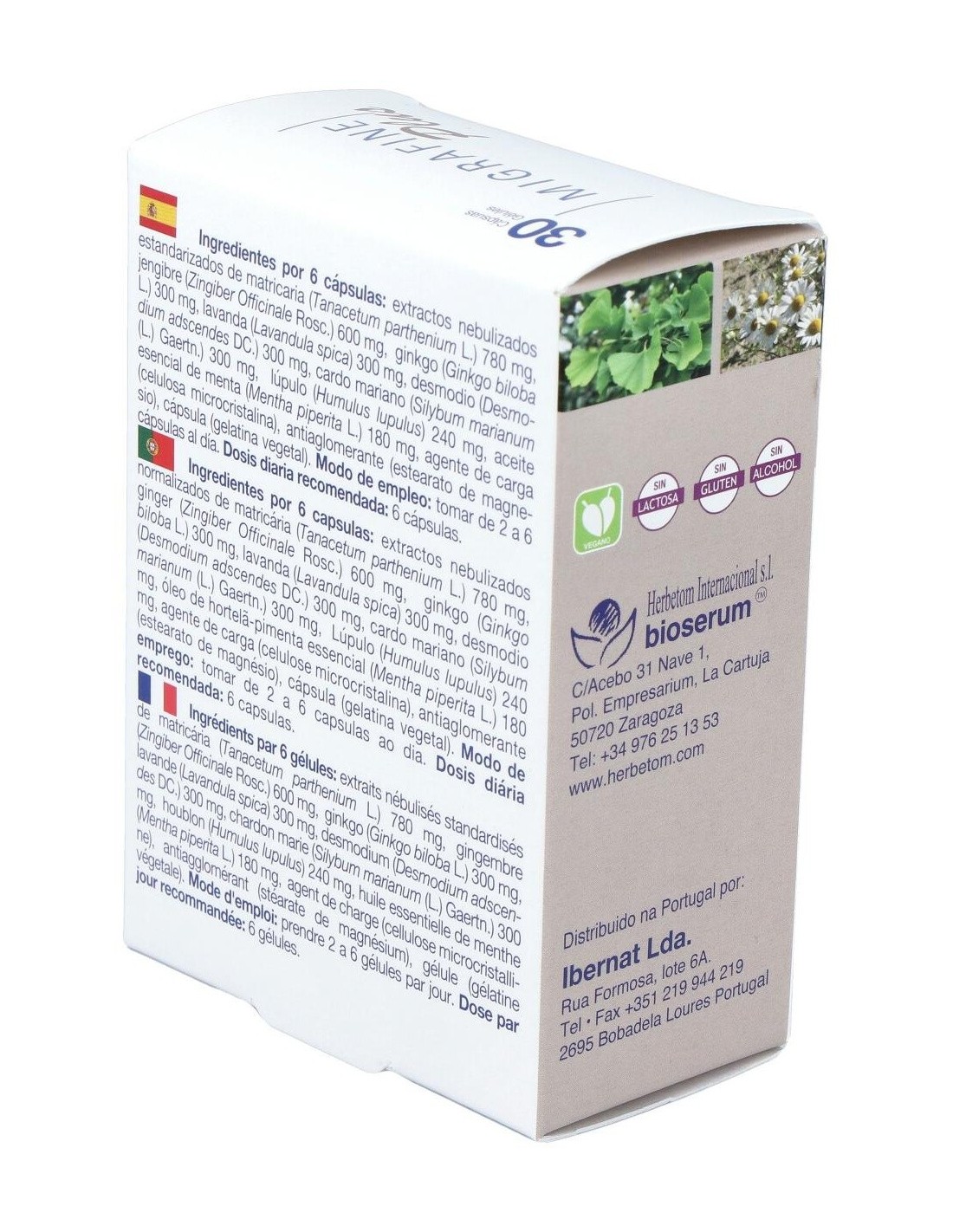 Herbetom Migrafine Plus 30 cápsulas está destinado al tratamiento y prevención de migrañas.
