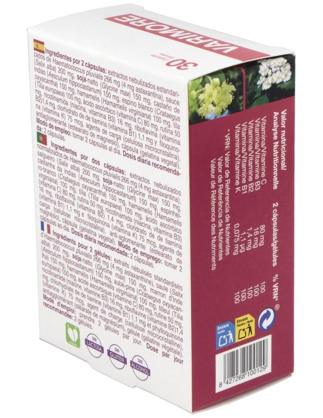 Herbetom Varimore 30 cápsulas mejora la circulación sanguínea venosa y arterial, disminuyendo la hipertensión.