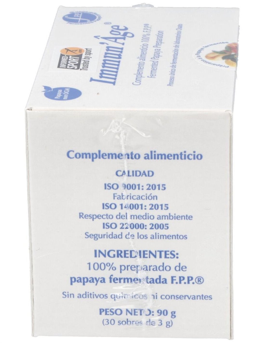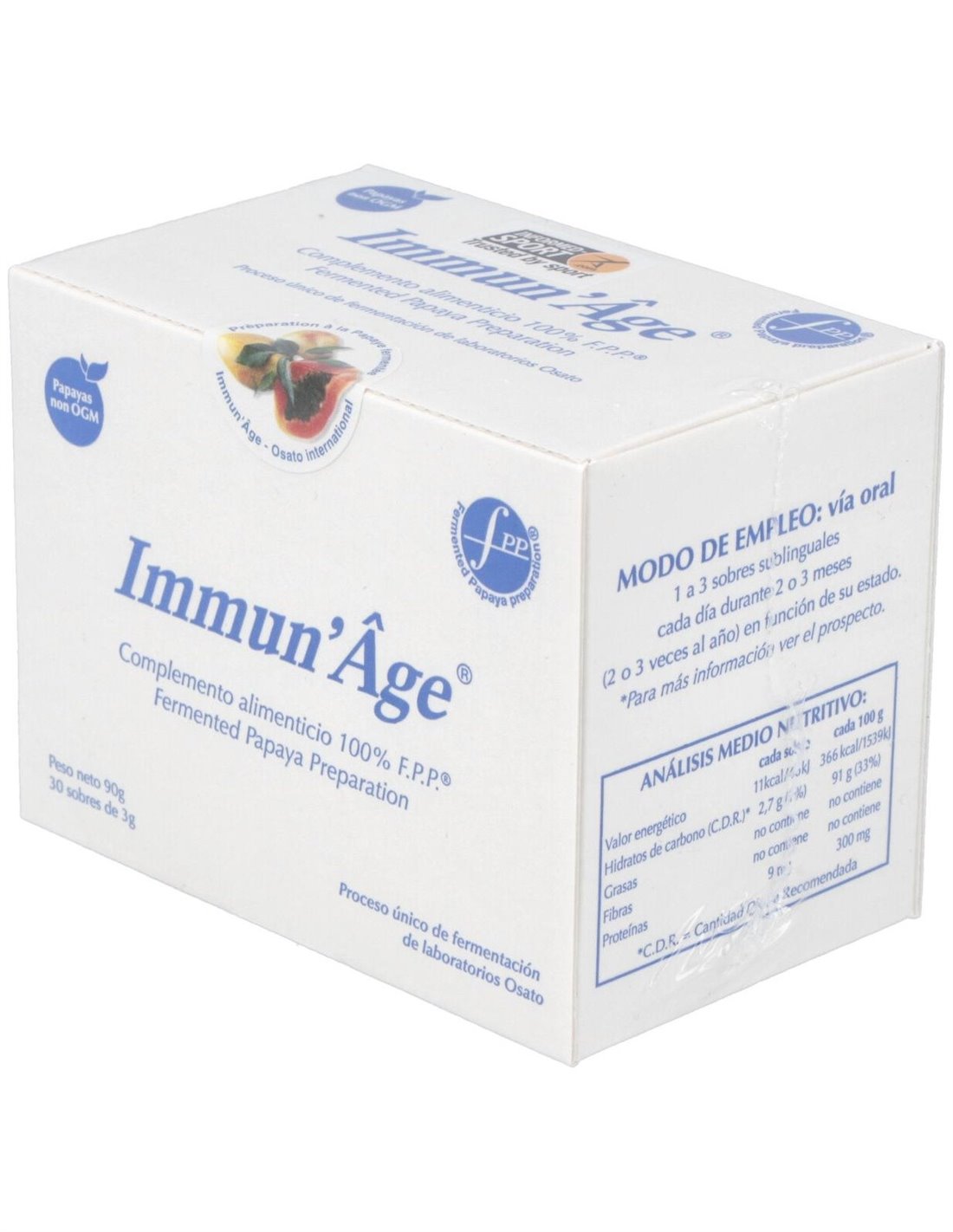 Contiene Extracto de Papaya Fermentada gracias al proceso de extracción patentado exclusivo. Este nutriente contribuye al normal funcionamiento del sistema inmune y a proteger a las células frente al estrés oxidativo.