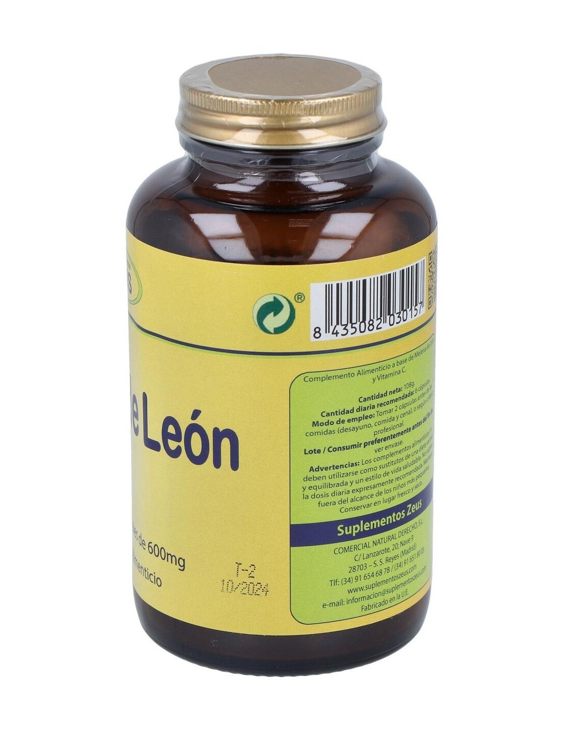 Jalea Real 250 mg, Maca 40 mg, Taurina 50 mg, Vitamina C 60 mg, Ganoderma lucidum 10 mg.