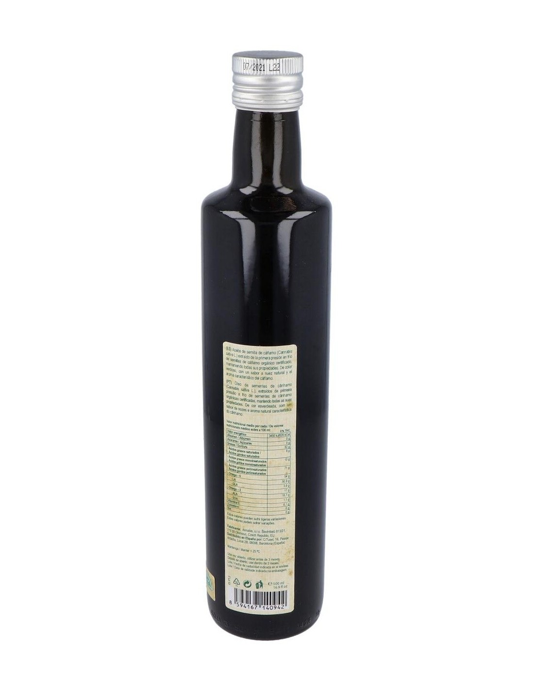 100% Aceite de cáñamo BIO de orígen canadiense extraído de la primera presión en frío.