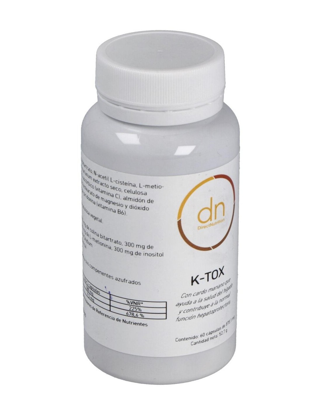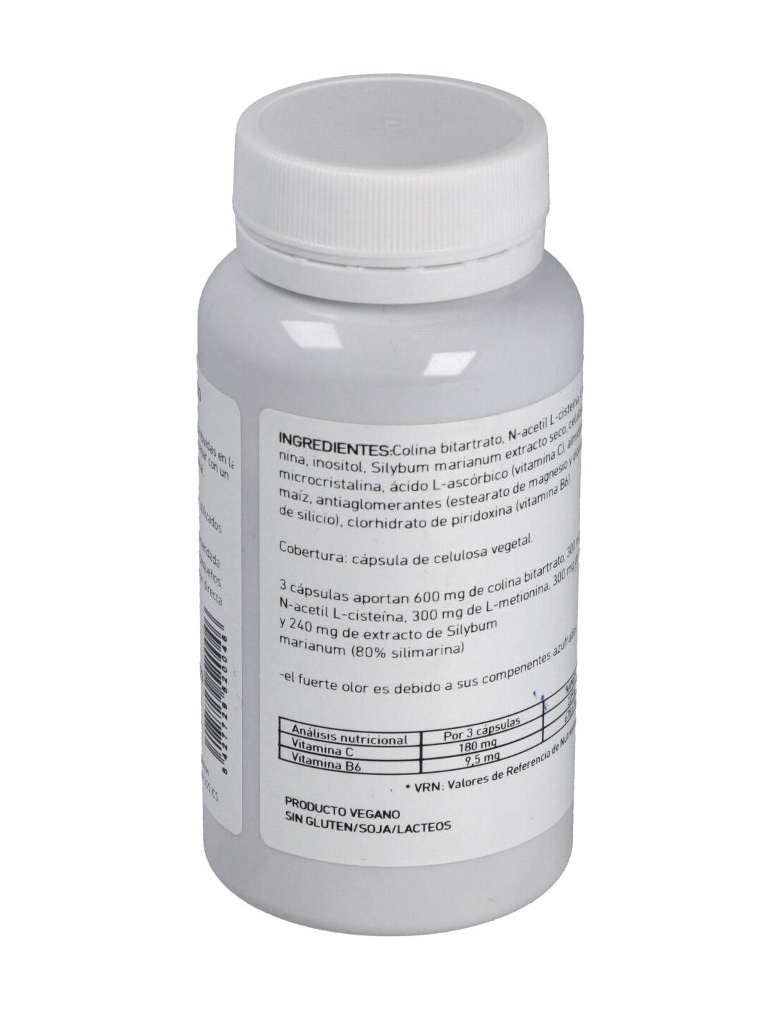 Por cápsula: Colina citrato 200 mg, Inositol 100 mg, N-Acetil-cisteína 100 mg, L-Metionina 100 mg, Silimarina 80 mg, Vitamina C 60 mg, Vitamina B6 (piridoxina) 15 mg.