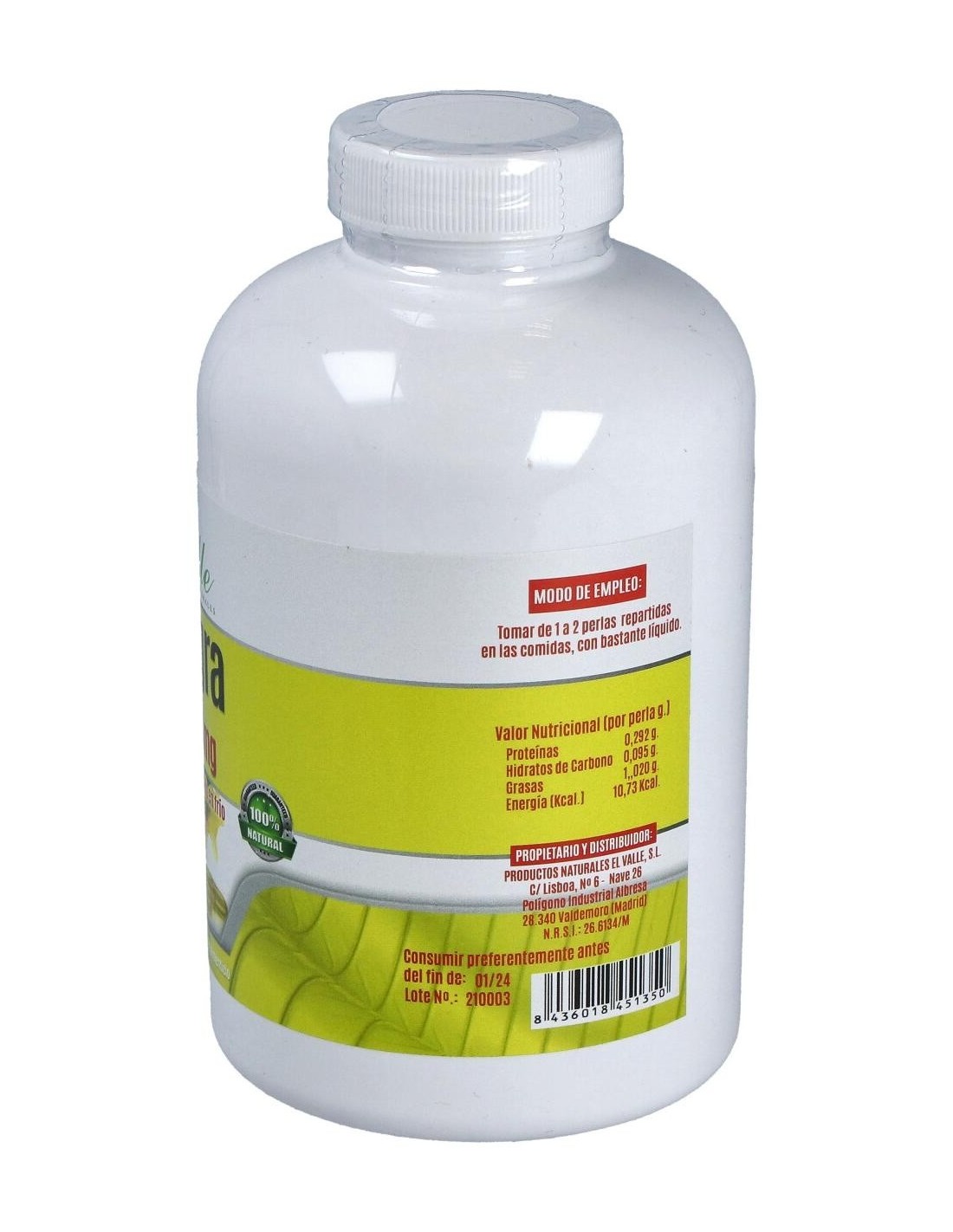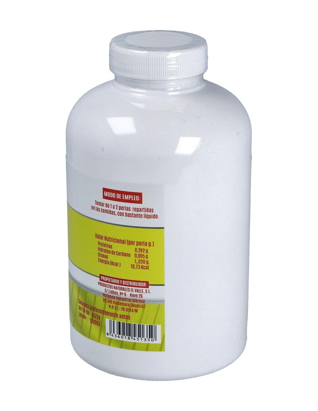Tomar 2-3 perlas al día, antes de las comidas, con abundante líquido.