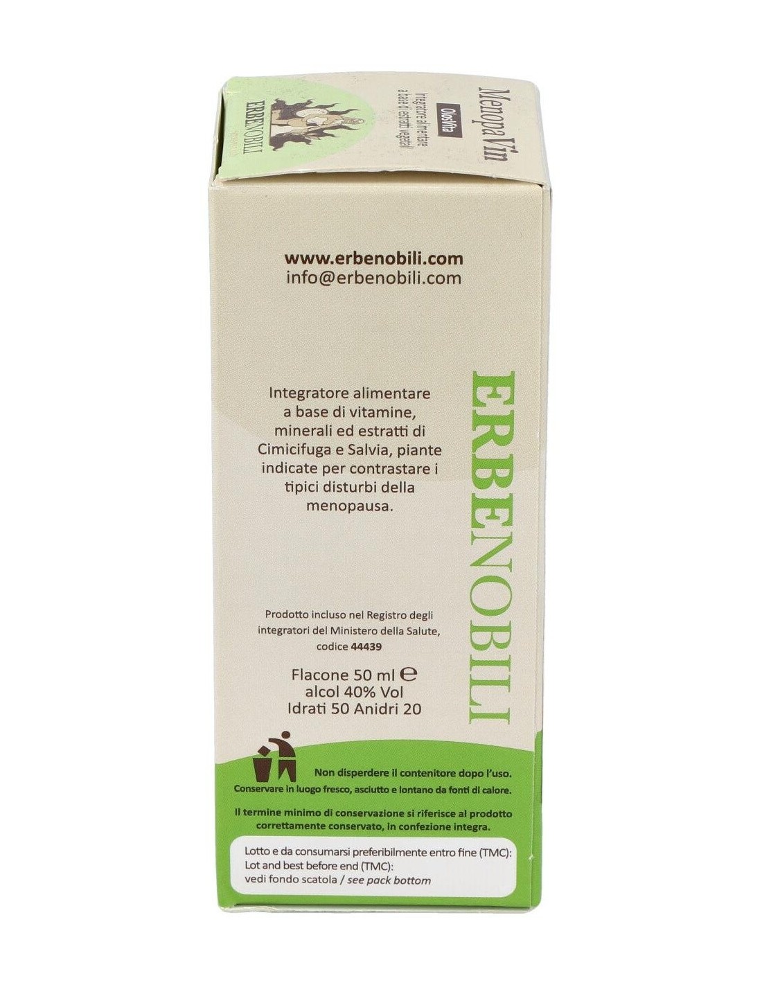 Complemento alimenticio a base de Vitaminas, minerales y extractos vegetales de Cimicífuga y Salvia, plantas indicadas para contrarrestar los típicos trastornos menopáusicos.