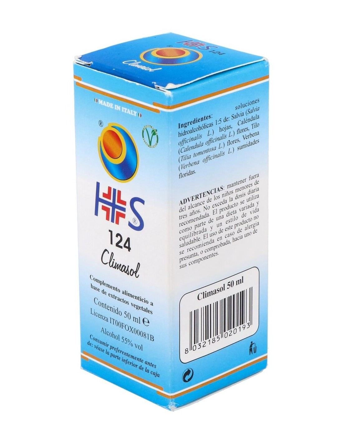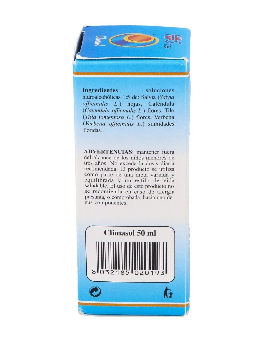 TSA (Tintura Espagírico-Alquímica de Solanimus R.E.1/5) de: Salvia (Salvia officinalis) hojas 2,100 g, Caléndula (Calendula officinalis) flores 1,575 g, Tilo (Tilia tomentosa) flores 1,365 g, Verbena (Verbena officinalis) sumidades floridas 0,210 g.