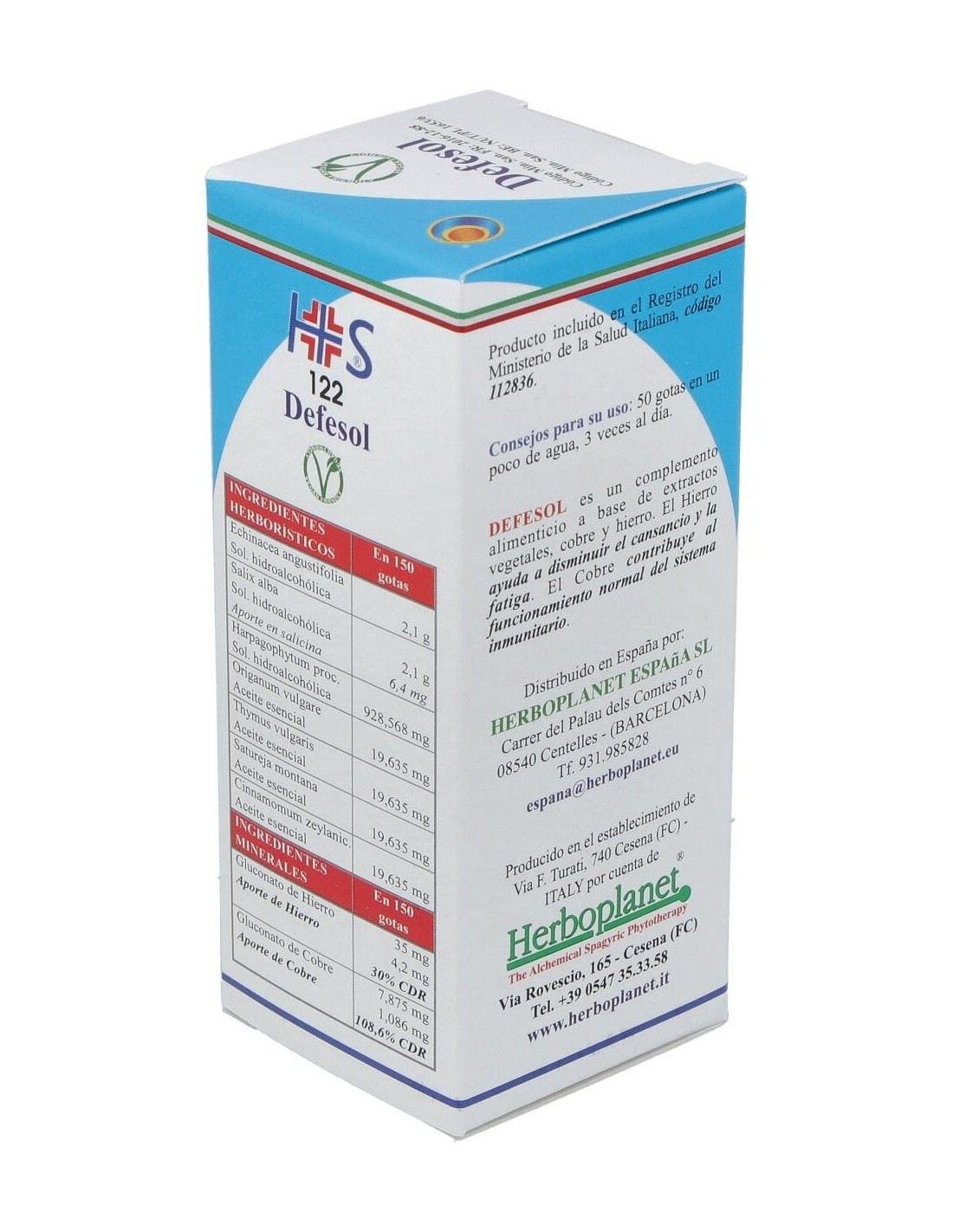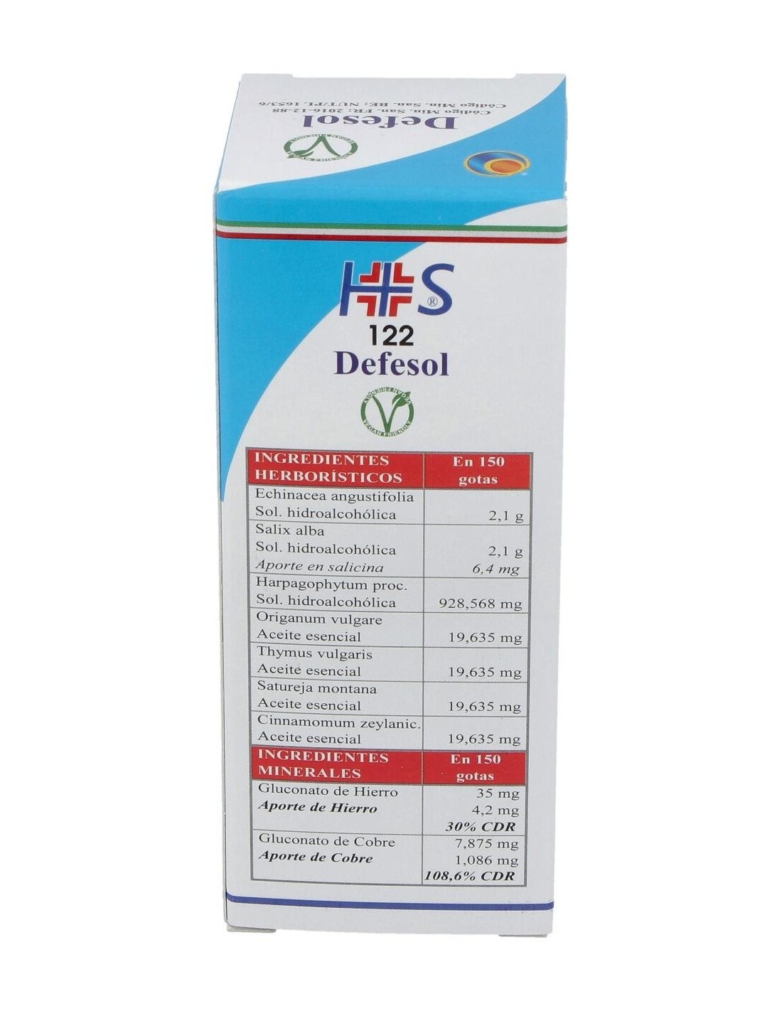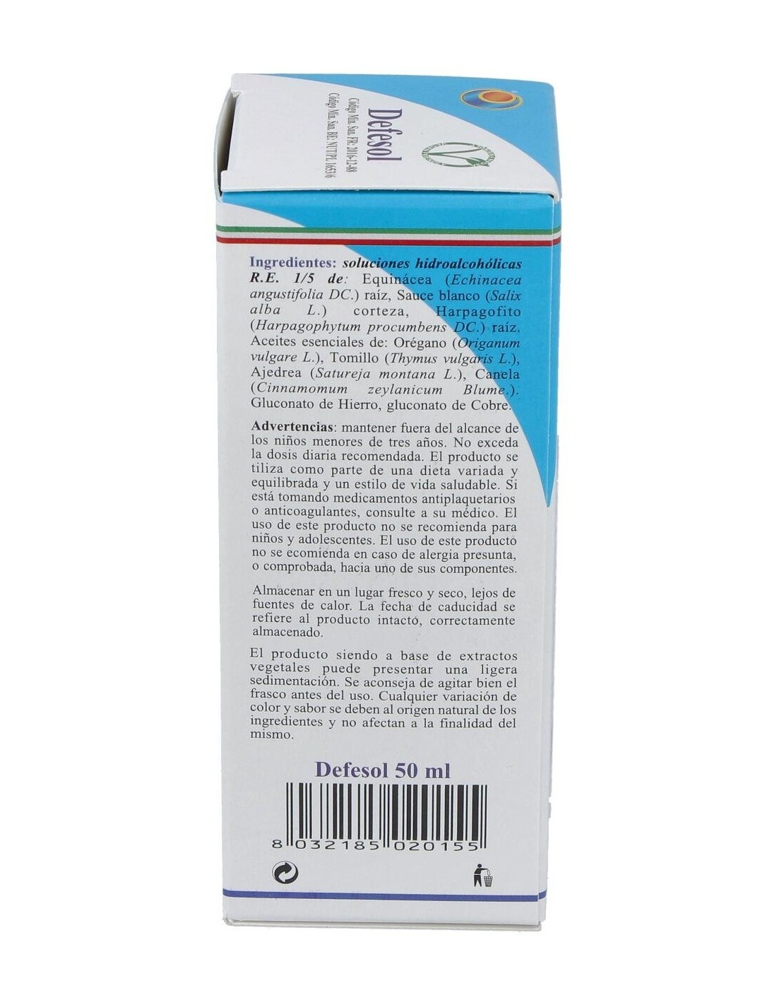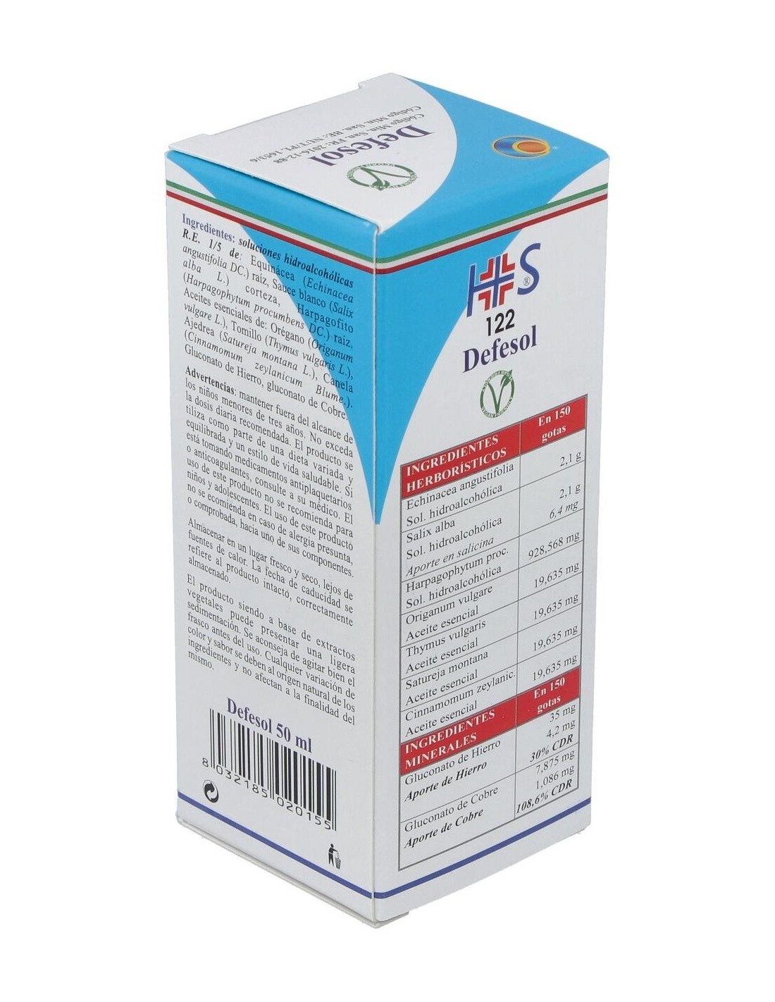 TSA (Tintura Espagyrico-Alquímica de Solanimus R.E. 1/5) de: Equinácea (Echinacea angustifolia) planta entera 2,1 g, Sauce blanco (Salix alba) corteza 2,1 g, Harpagofito (Harpagophytum procumbens) raíz 928 mg. QSPC (QuintaEsencia Espagírica de Paracelso Canónica) de Orégano (Origanum vulgare) partes aéreas 19,6 mg, QSPC de Tomillo (Thymus vulgaris) hojas 19,6 mg., QSPC de Ajedrea (Satureja montana) hojas 19,6 mg, QSPC de Canela (Cinnamomum zeylanicum) corteza 19,6 mg. Gluconato de Hierro 35 mg. (correspondiente a un aporte de hierro de 4,2 mg = 30% RDA), Gluconato de Cobre 7,875 mg (correspondiente a un aporte de cobre de 1,086 mg = 108,6% RDA).