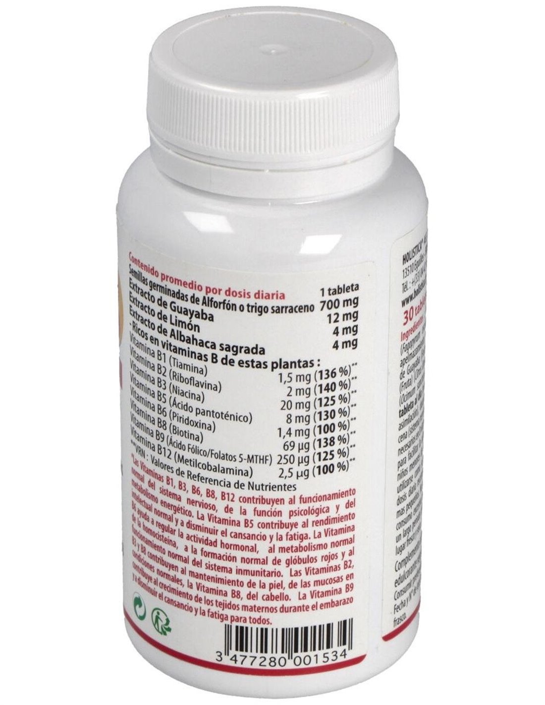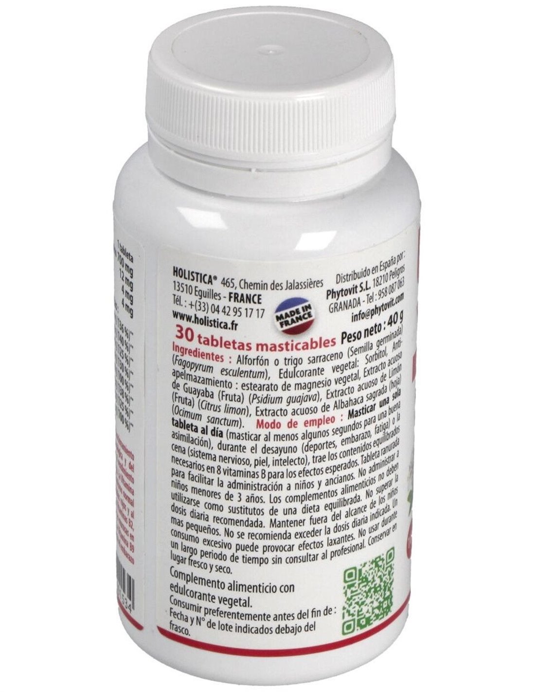 Trigo sarraceno (Fagopyrum esculentum), edulcorante de origen vegetal: Sorbitol, antiaglomerante: estearato de magnesio de origen vegetal, extracto acuoso de guayaba (Psidium guajava), extracto acuoso de limón (Citrus limon), extracto acuoso de Albahaca sagrada (Ocimum sanctum).
