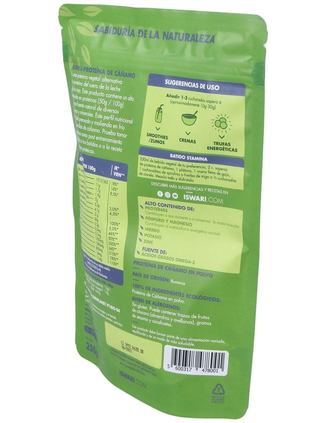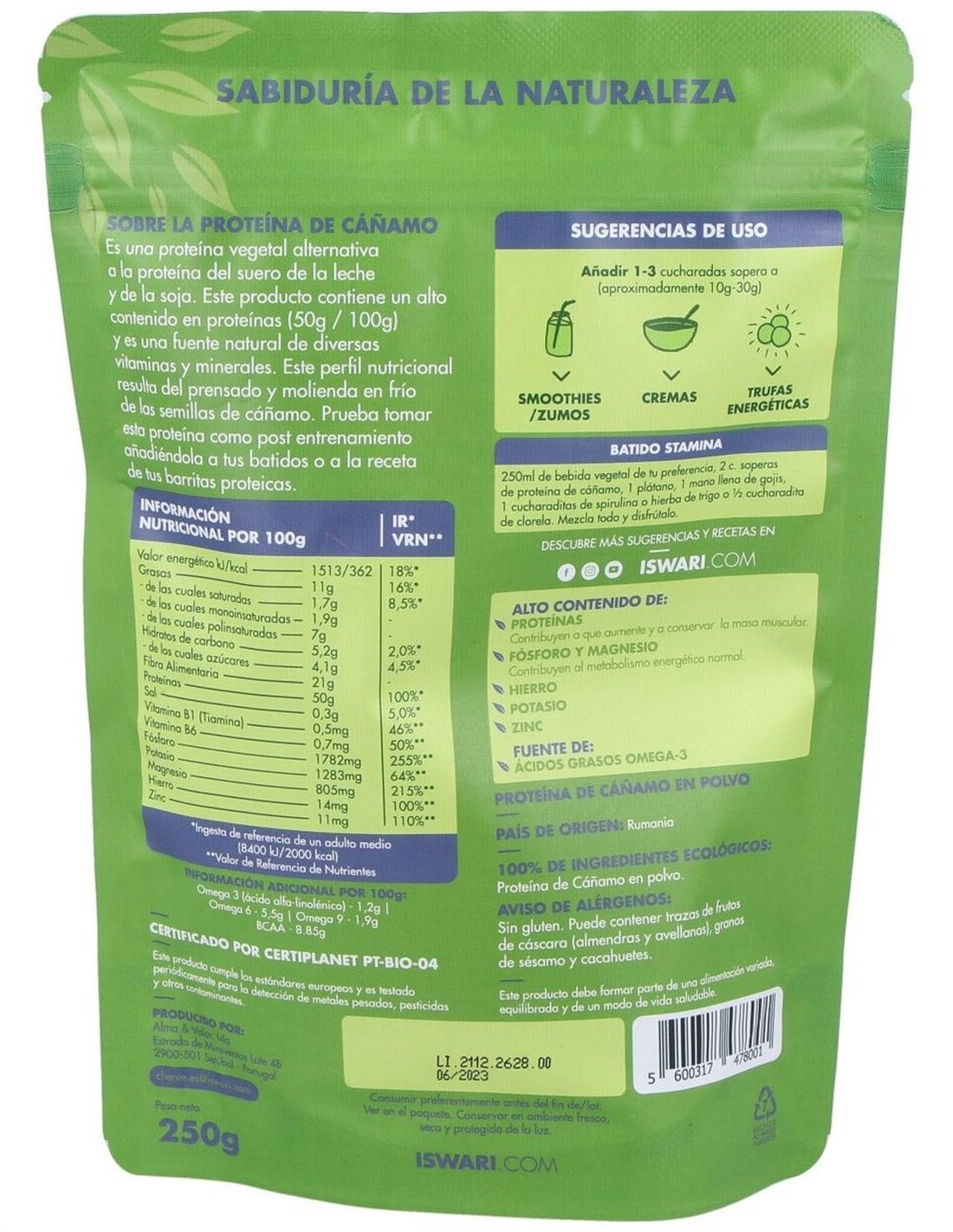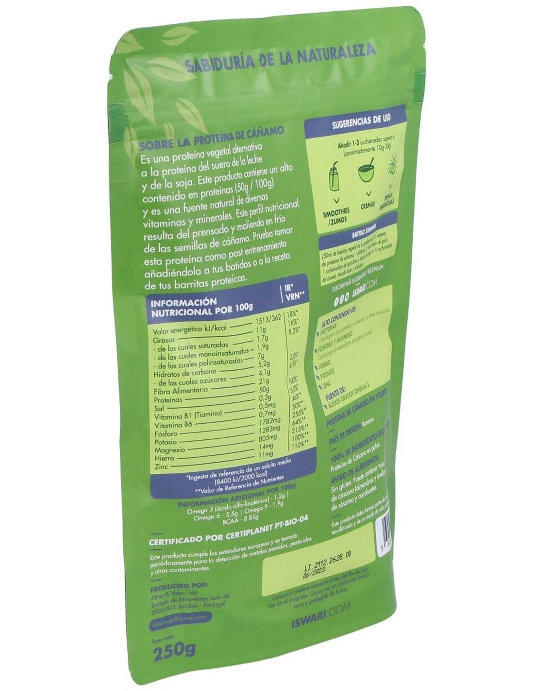 Proteina De Cañamo Superalimento 250Gr. Bio de Iswari