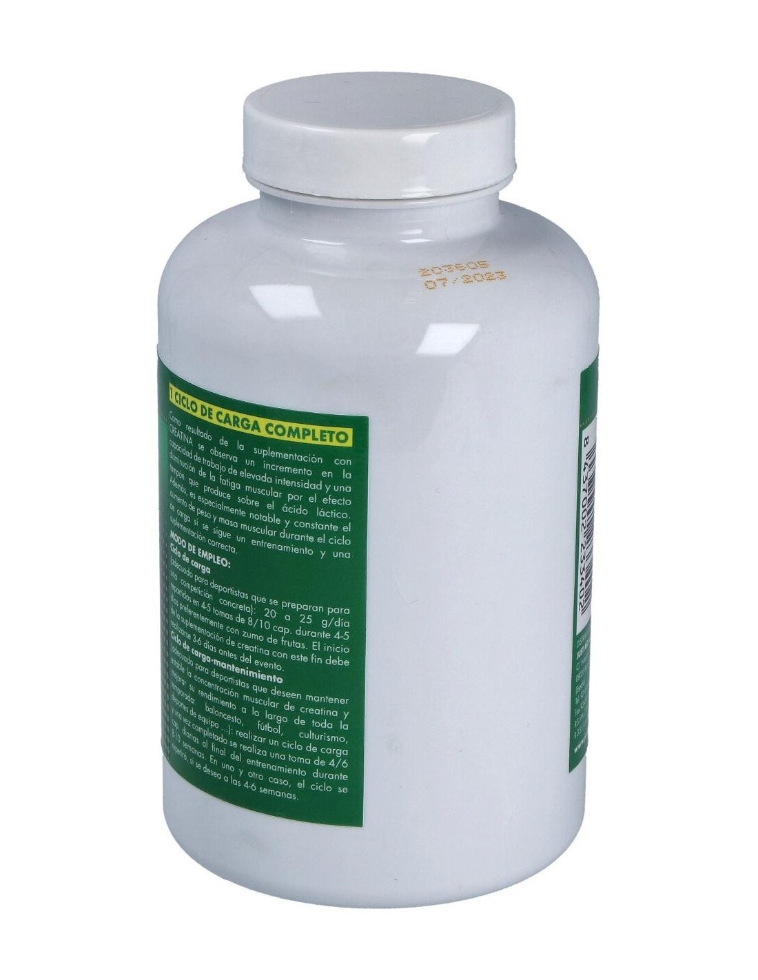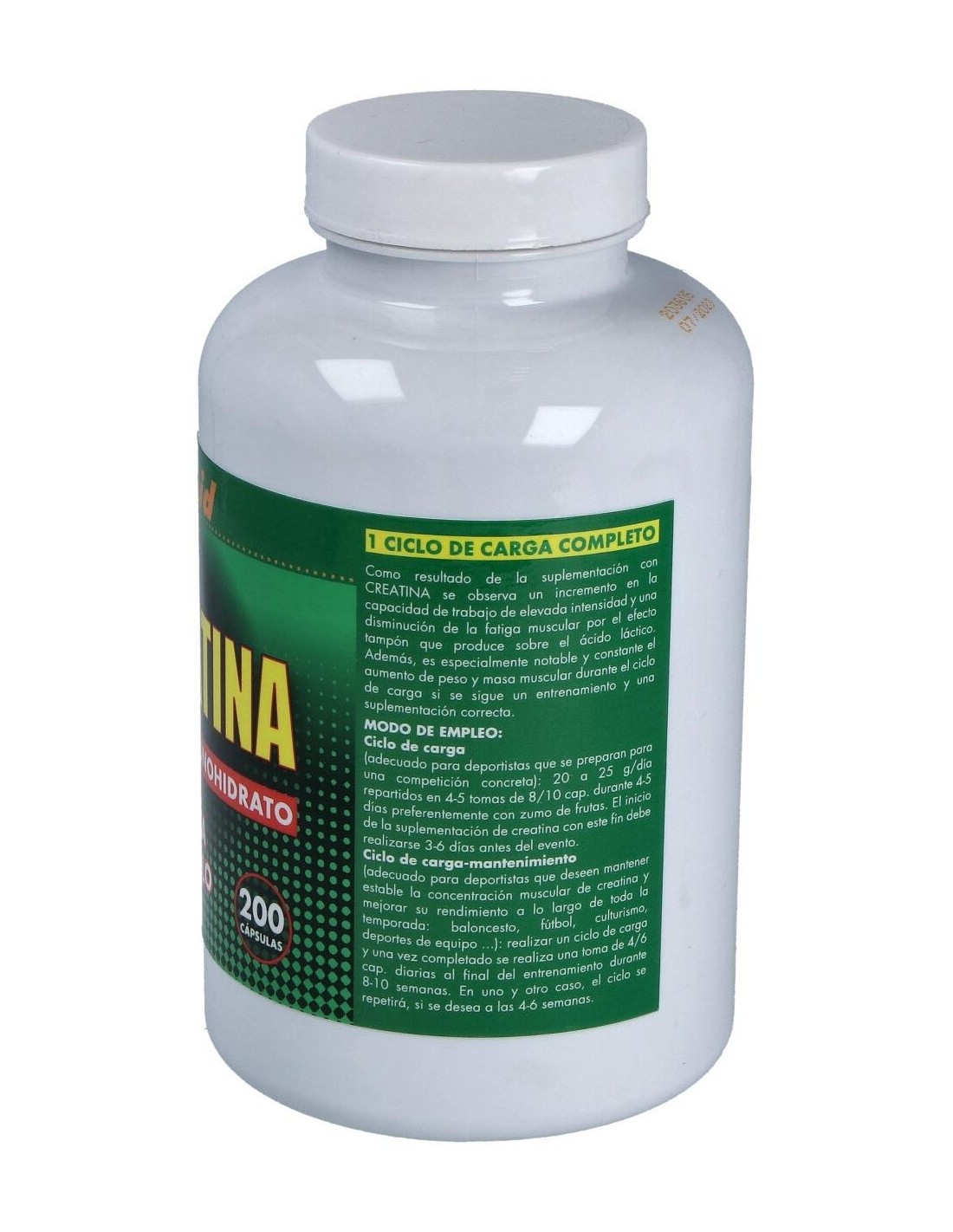 Ciclo de carga (adecuado para deportistas que se preparan para una competición concreta): Tomar de 20 a 25 g/día repartidos en 4-5 tomas de 5 g durante 4-5 días, preferentemente con zumo de frutas. El inicio de la suplementación con creatina debe realizarse 3-6 días antes de la competición.