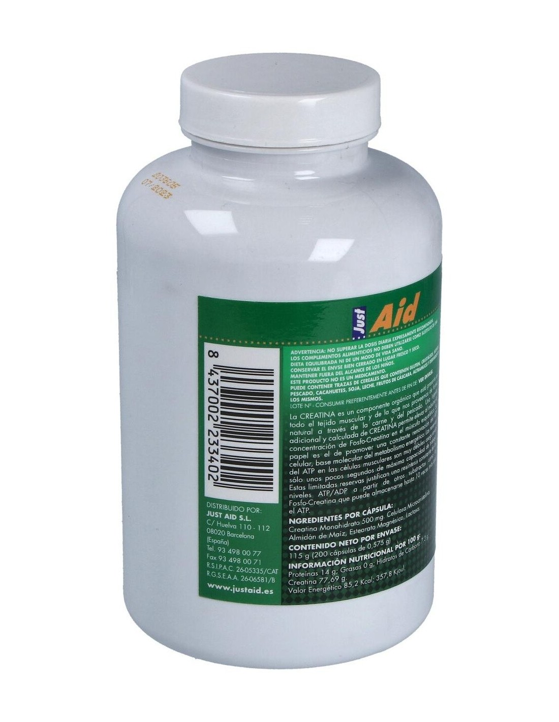 CREATINA (monohidrato pura) 200cap. de JUST AID