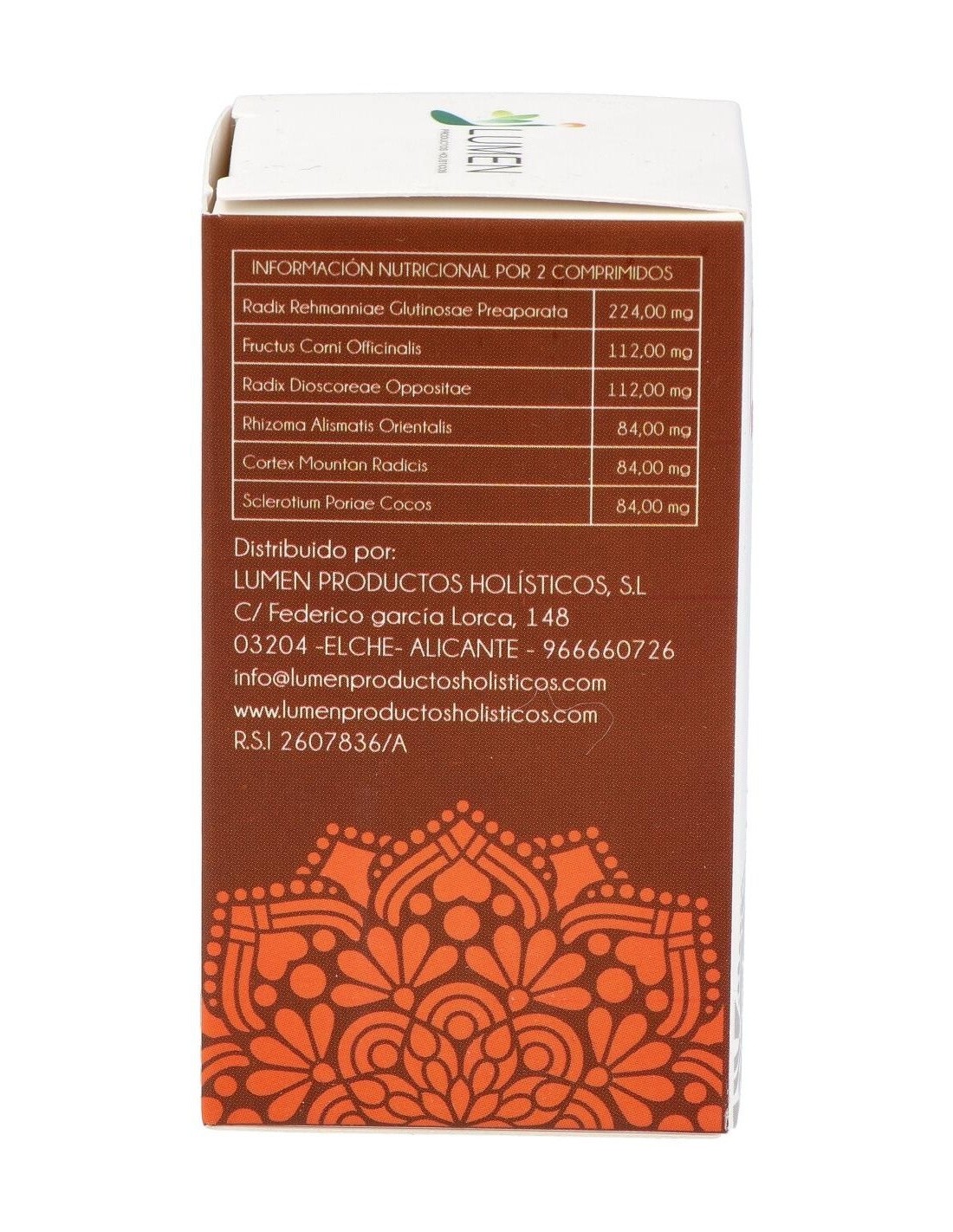 Radix Rehmannia Glutinosa preparada, Fructus Corni officinalis, Radix Dioscorea Opposita, Rhizoma Alismatis Orientalis, Cortex Moutan Radicis, Poria Cocos.