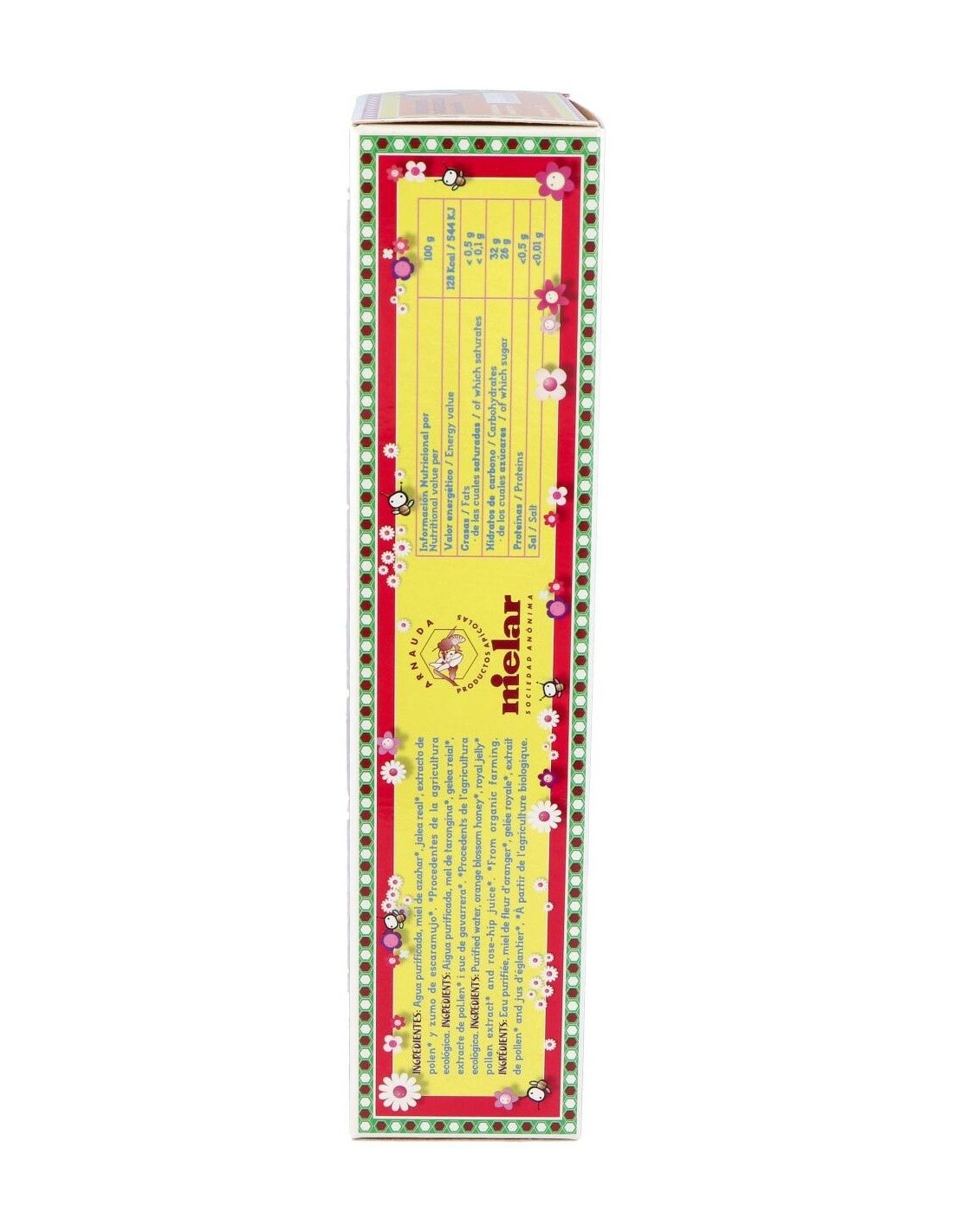 Agua destilada, miel de azahar, jalea real, extracto de polen y zumo de escaramujo.