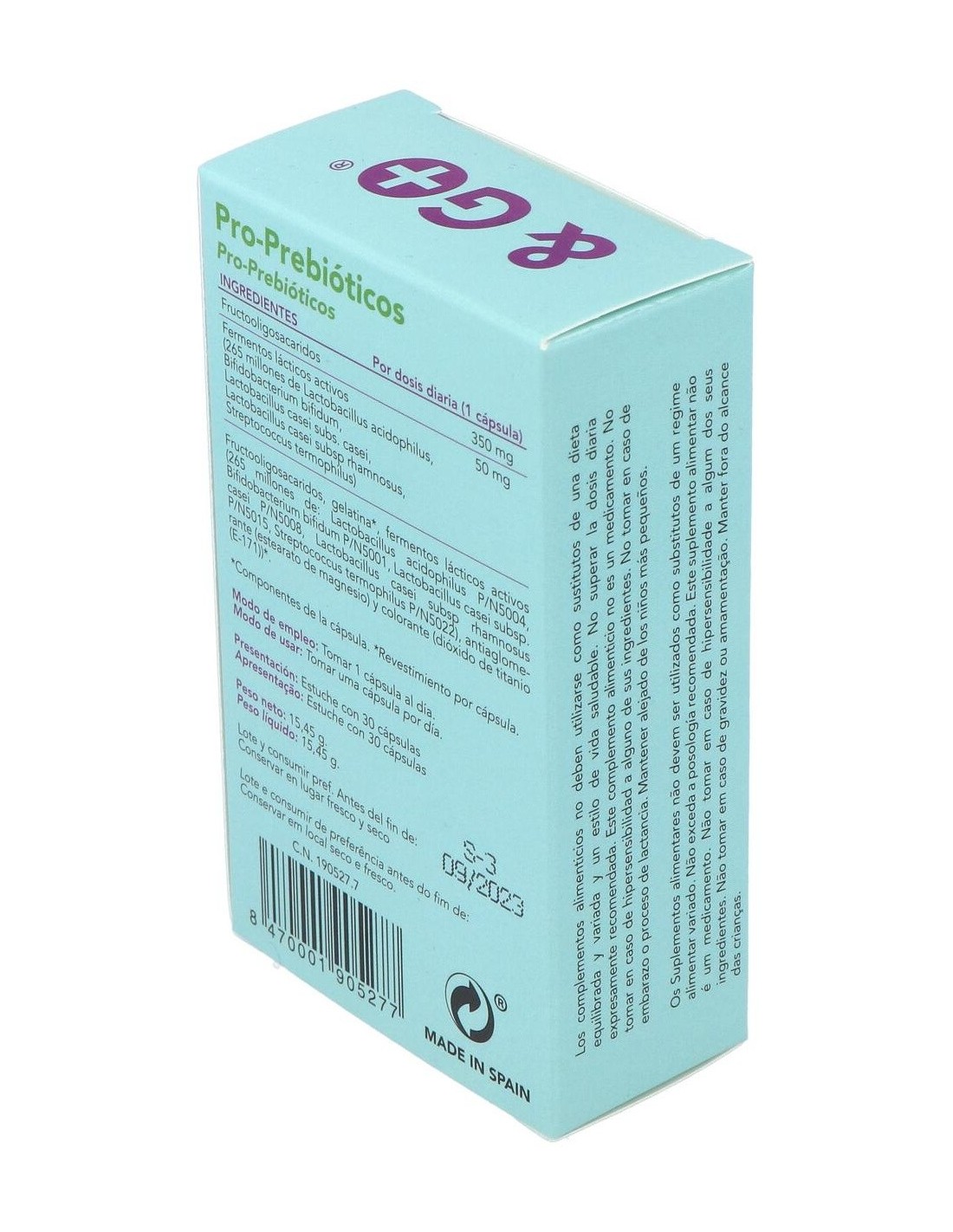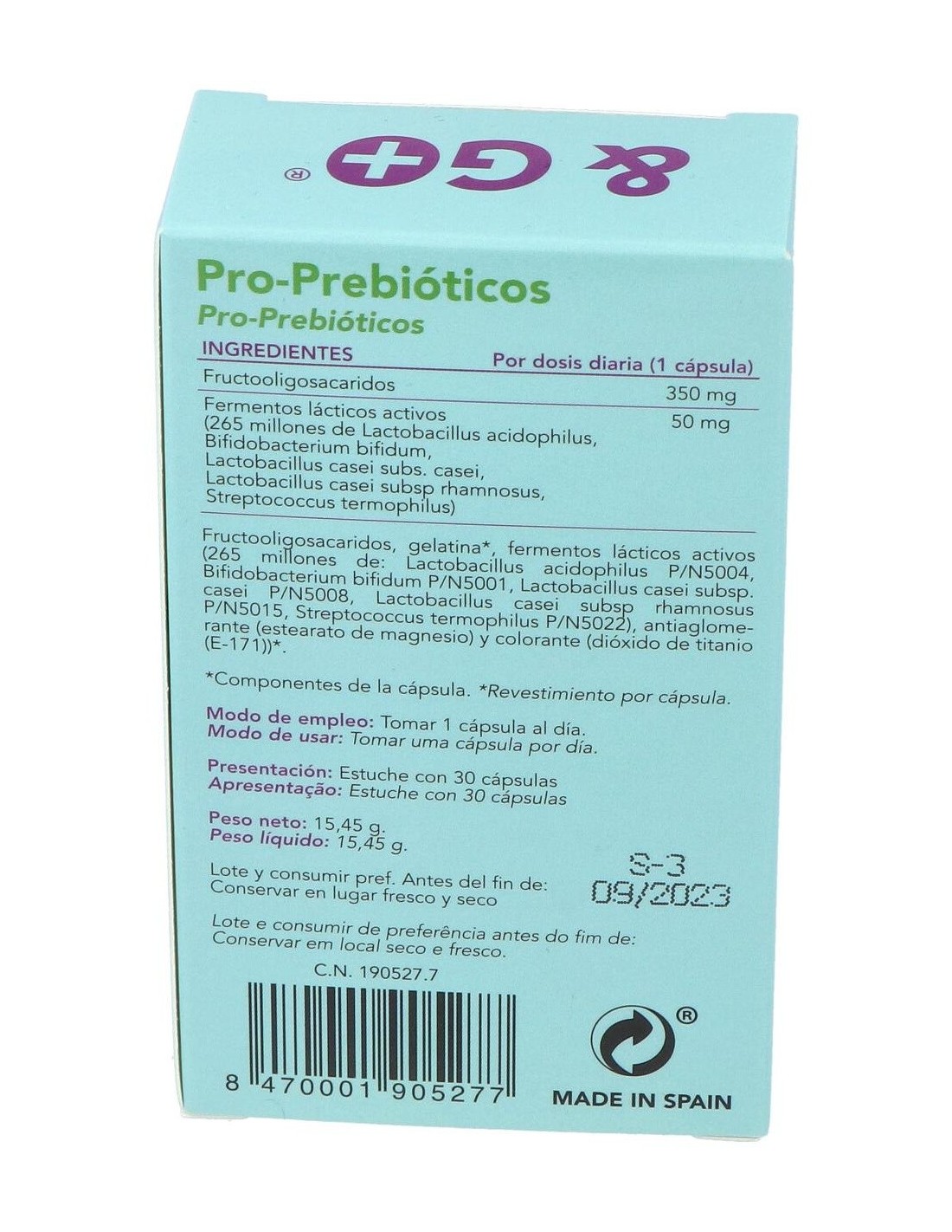 Cápsulas que contienen tanto probióticos como prebióticos. Los probióticos son microorganismos vivos( no dañiños para el ser humano) que ingerimos con el fin de restblecer la flora bacteriana intestinal normal, ya que es vital para el correcto funcionamiento digestivo e inmune. Por otro lado, los prebióticos son compuestos que sirven de alimento a la flora intestinal y permitiendo, por tanto, su correcto desarrollo. Así , con la mezcla de ambos se obtiene un doble efecto para la regeneración de la flora intestinal.