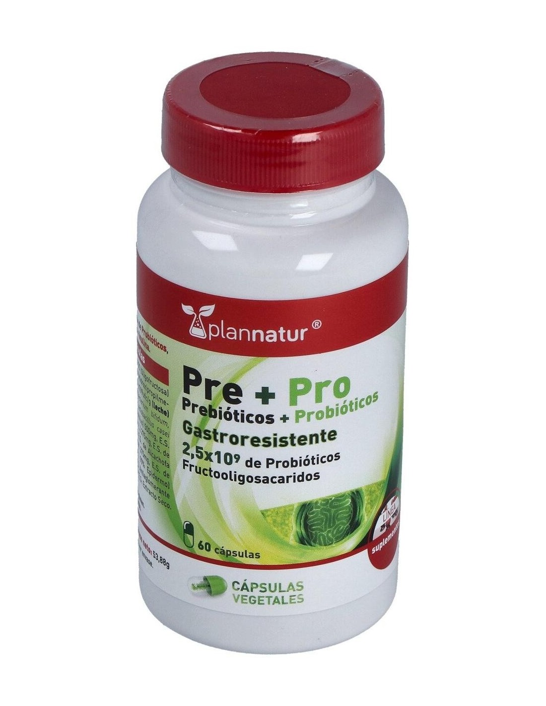 Prebióticos: E.S Achicoria 4:1, E.S Cebolla 10:1, E.S Alcachofa, Plantago ovata y Inulina.