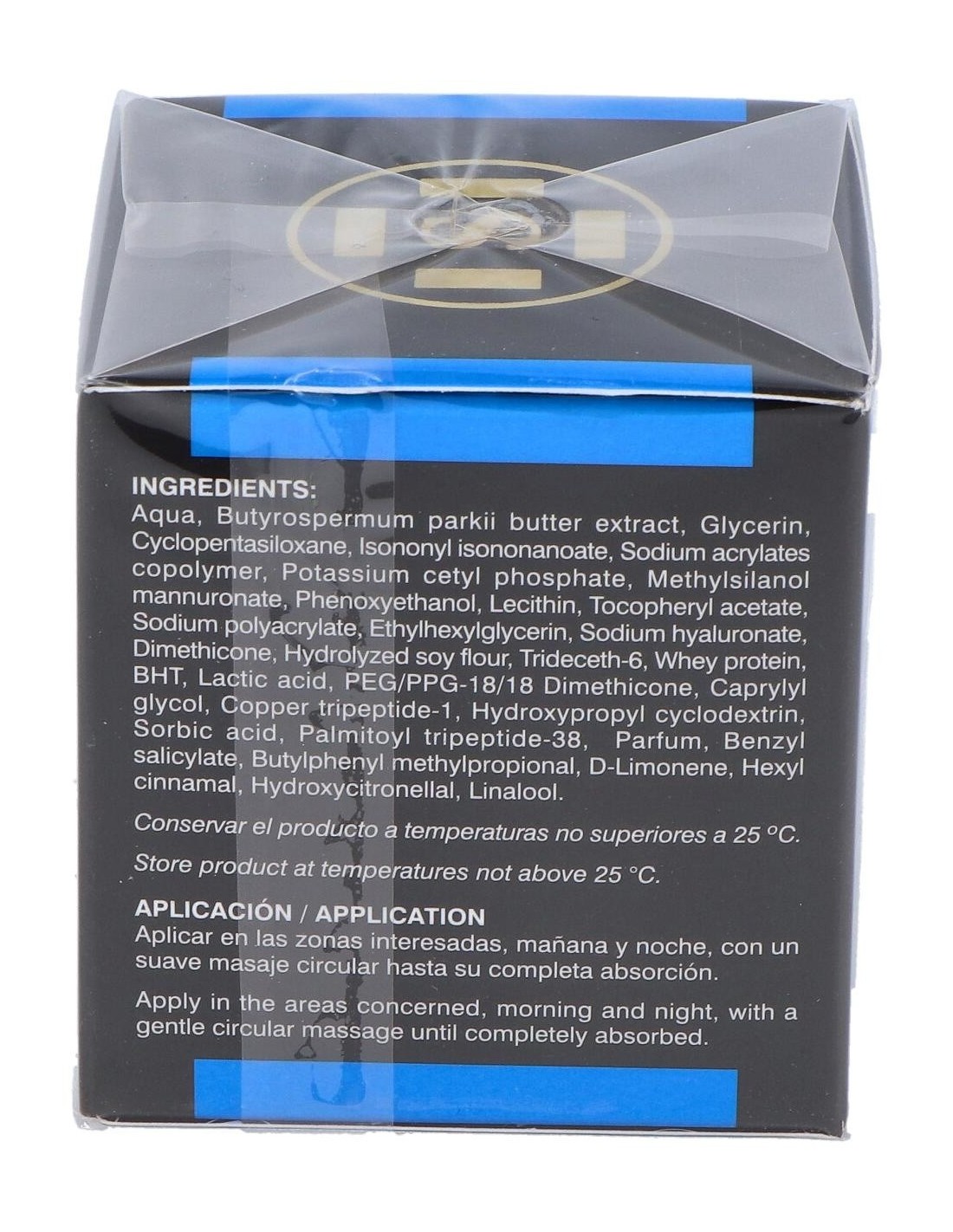 Ácido hialurónico, manteca de karité, vitamina E, methylsilanol mannuronate, palmitoyl tripeptide-38, milk peptides complex (citoquinas), hydrolized soy flour, cooper tripeptide-1.
