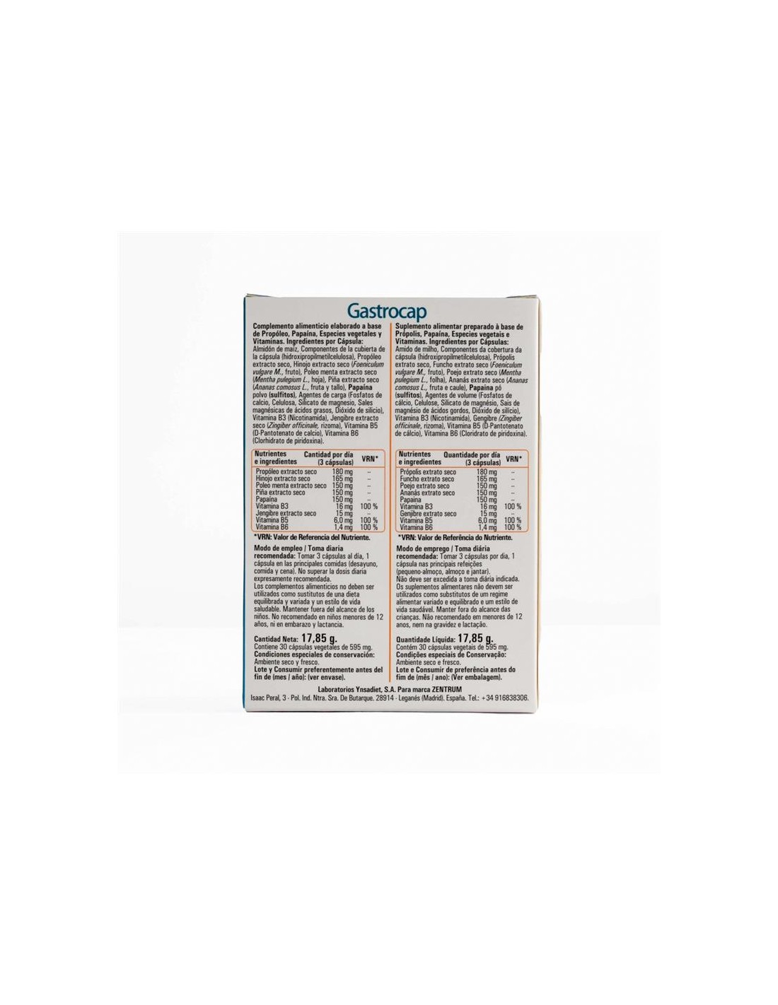 Ingredientes: Própolis, Funcho, Foeniculum vulgare, Poejo, Mentha pulegium, Abacaxi, Ananas comosus, Papaína, Vitamina B3, Nicotinamida, Gengibre, Zingiber officinale, Vitamina B5, D Pantotenato de Cálcio, Vitamina B6, Cloridrato de Piridoxina.