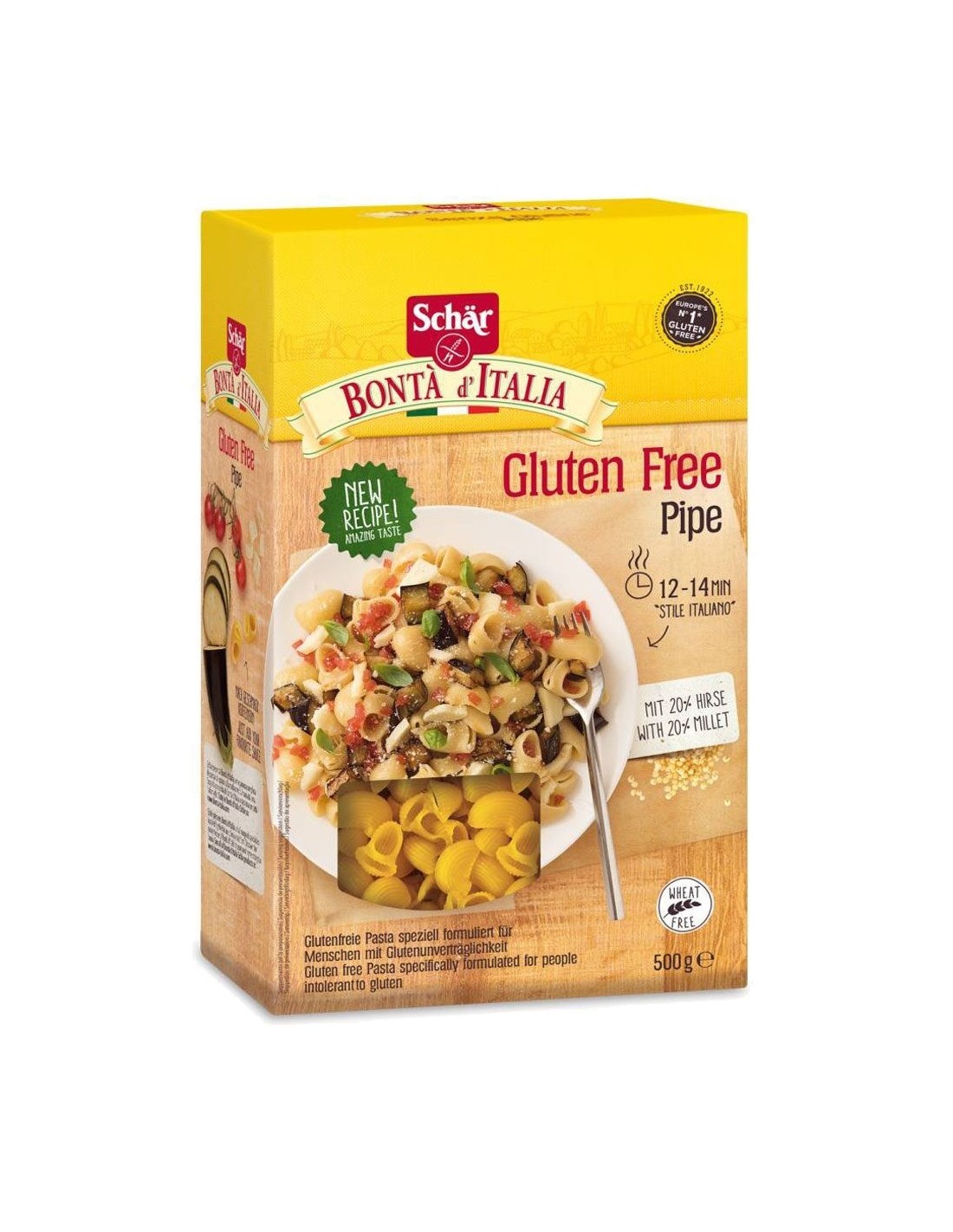 Macarrones italianos sin gluten, lactosa ni conservantes.