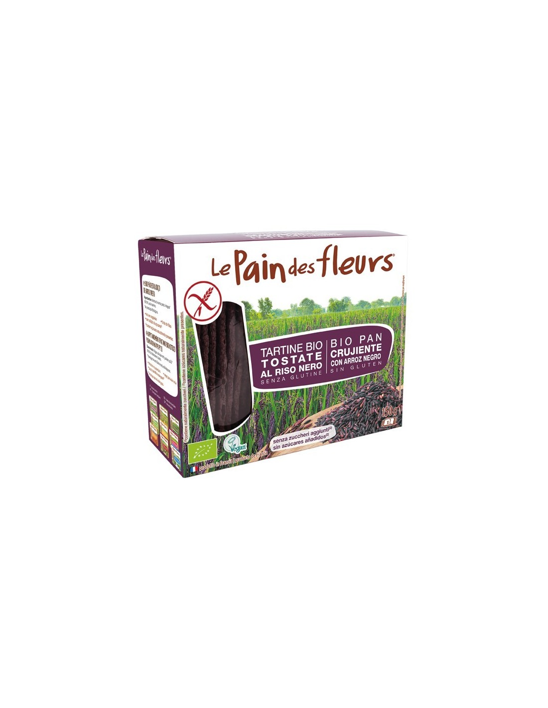 Cracker crujiente con arroz negro. Alto contenido de magnesio. Sin azúcares añadidos. Contiene azúcares naturalmente presentes. Fuente de fibra. Producto sin gluten. Vegano.