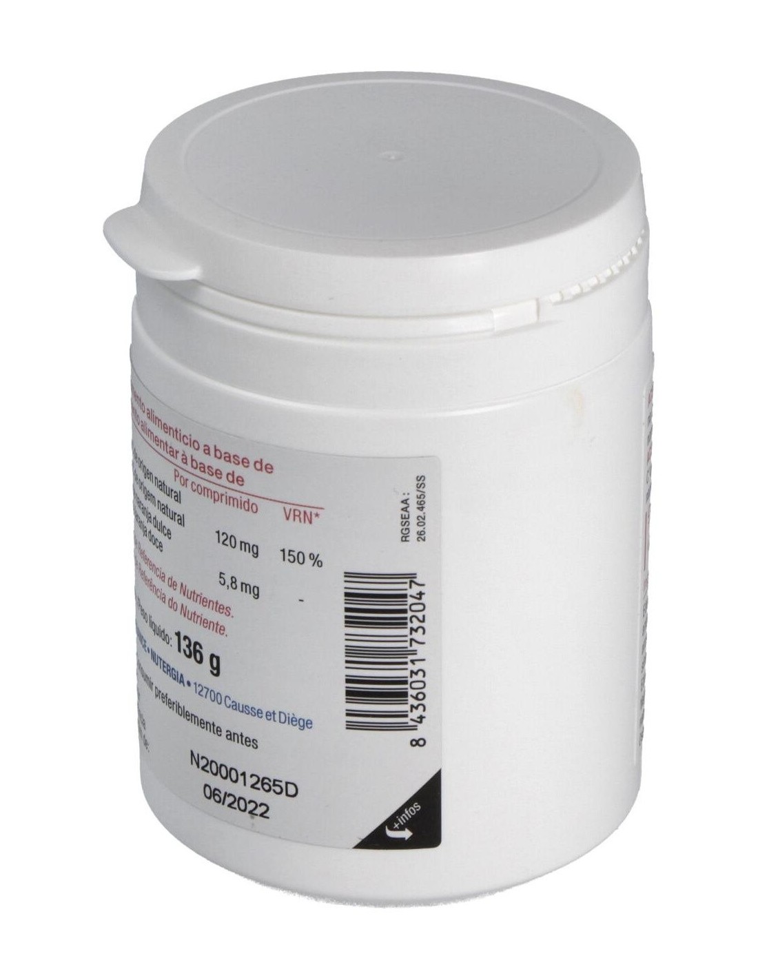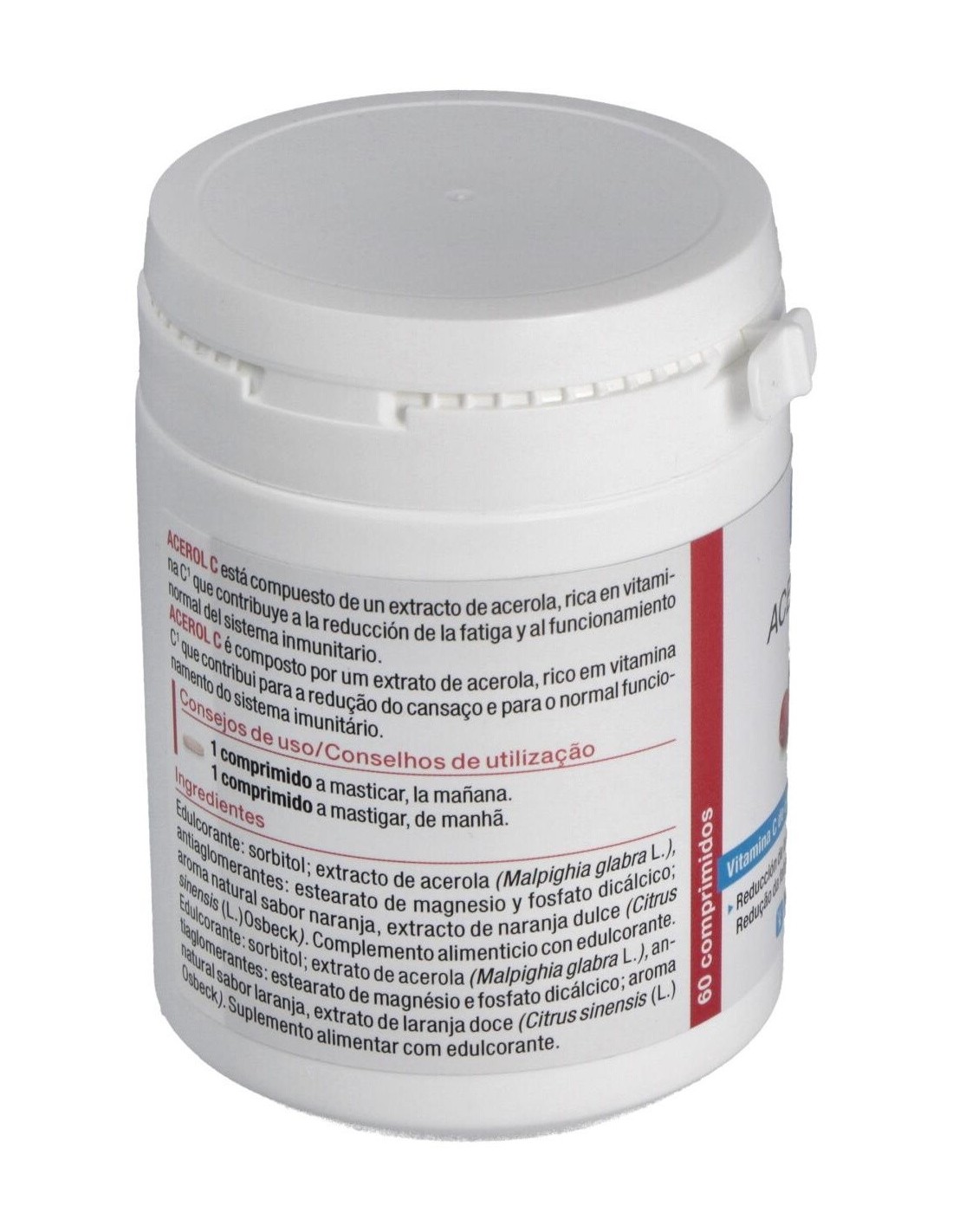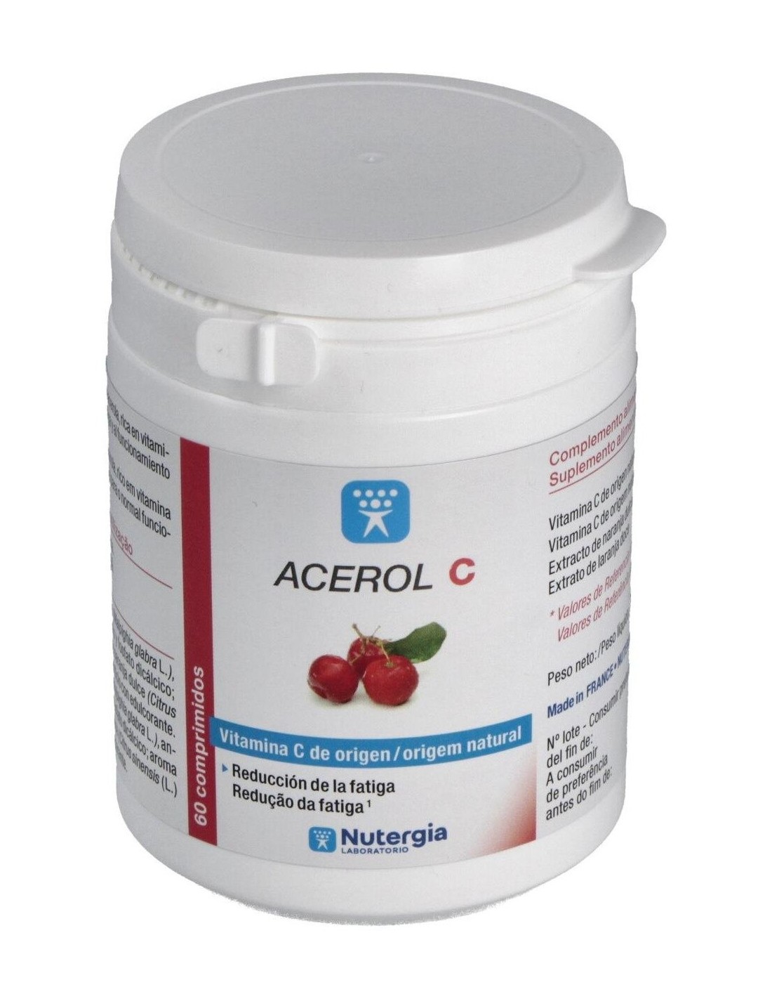 Comprimidos elaborados a base de extracto de acerola, extracto de limón y magnesio que retrasan la aparición de los signos de la fatiga y el cansancio, tanto físico como mental. Es una fuente rica en vitamina C, que favorece la absorción de hierro por el organismo y participa en el metabolismo energético.