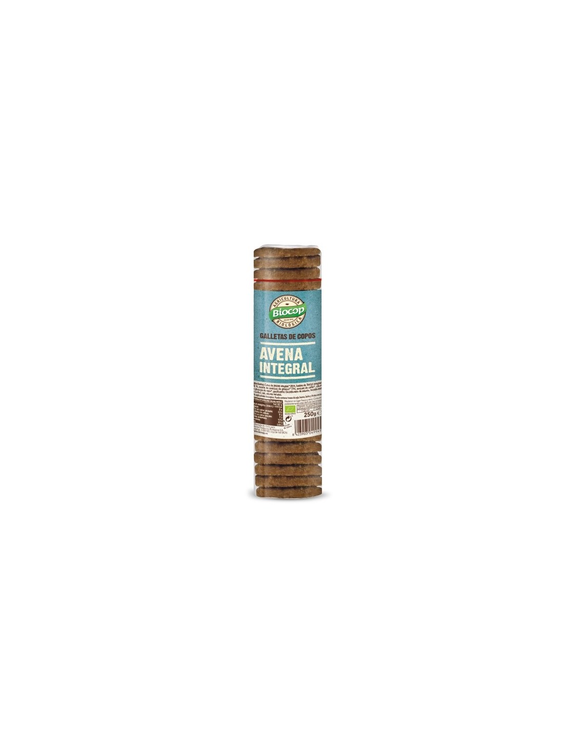 Galleta gruesa y crujiente hecha con harina de trigo integral y copos de avena. Tiene una buena digestibilidad por su contenido en fibra. Textura rústica auténtica de las galletas integrales Con aceite de girasol.