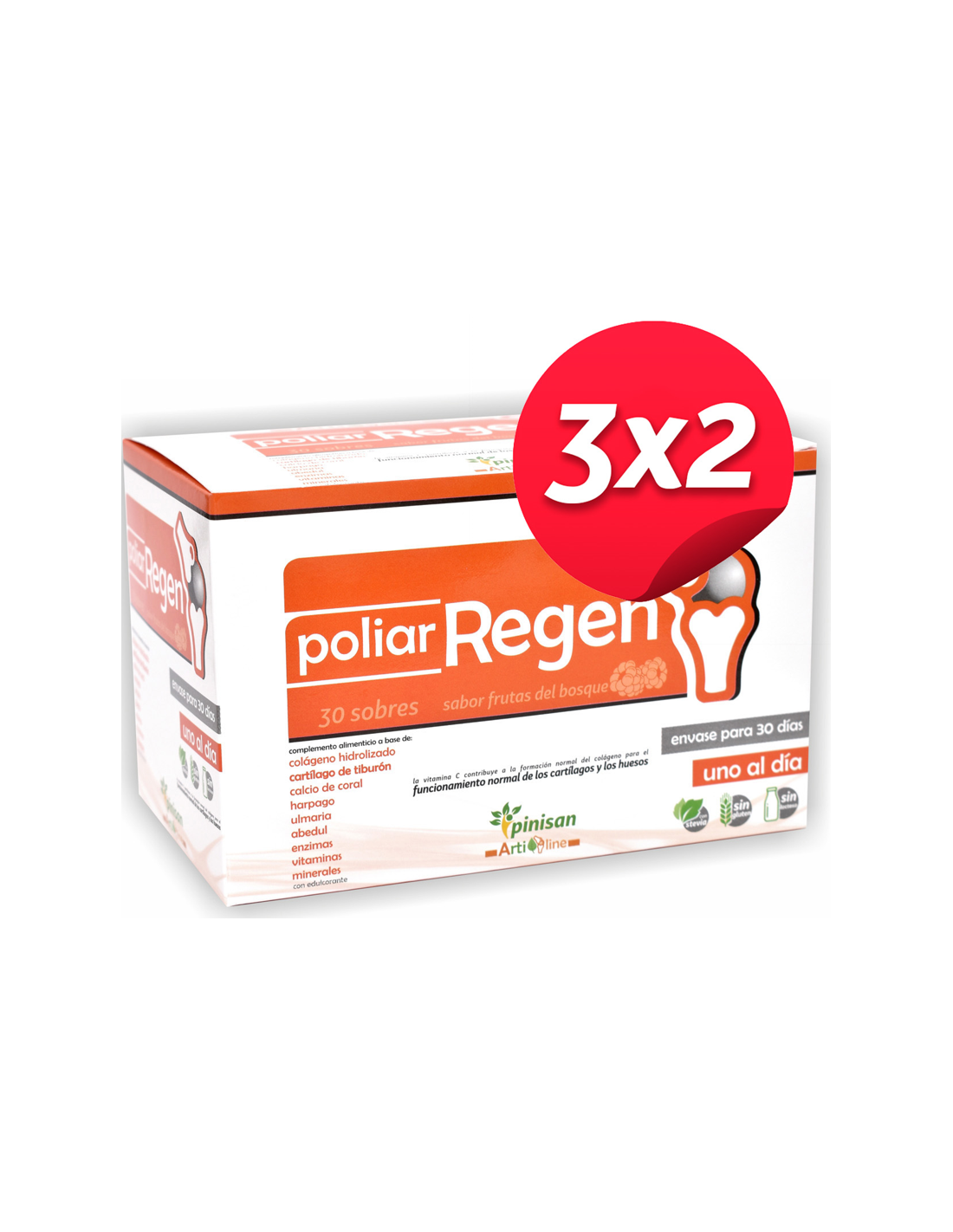 Características y Beneficios del Pack 3x2 Poliar Regen, 30 Sobres de Pinisan
