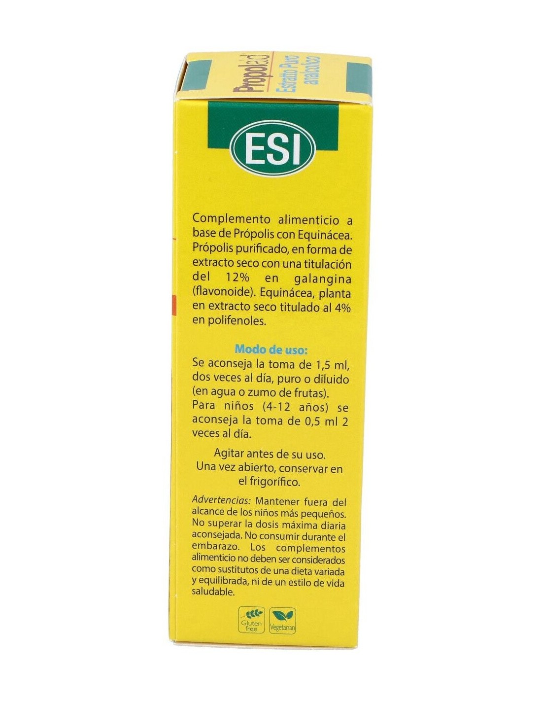 Própolis, extr. seco tit. 12% flavonoides totales como galangina / Equinácea purpurea, hierba, extr. seco tit. 4% polifenoles.