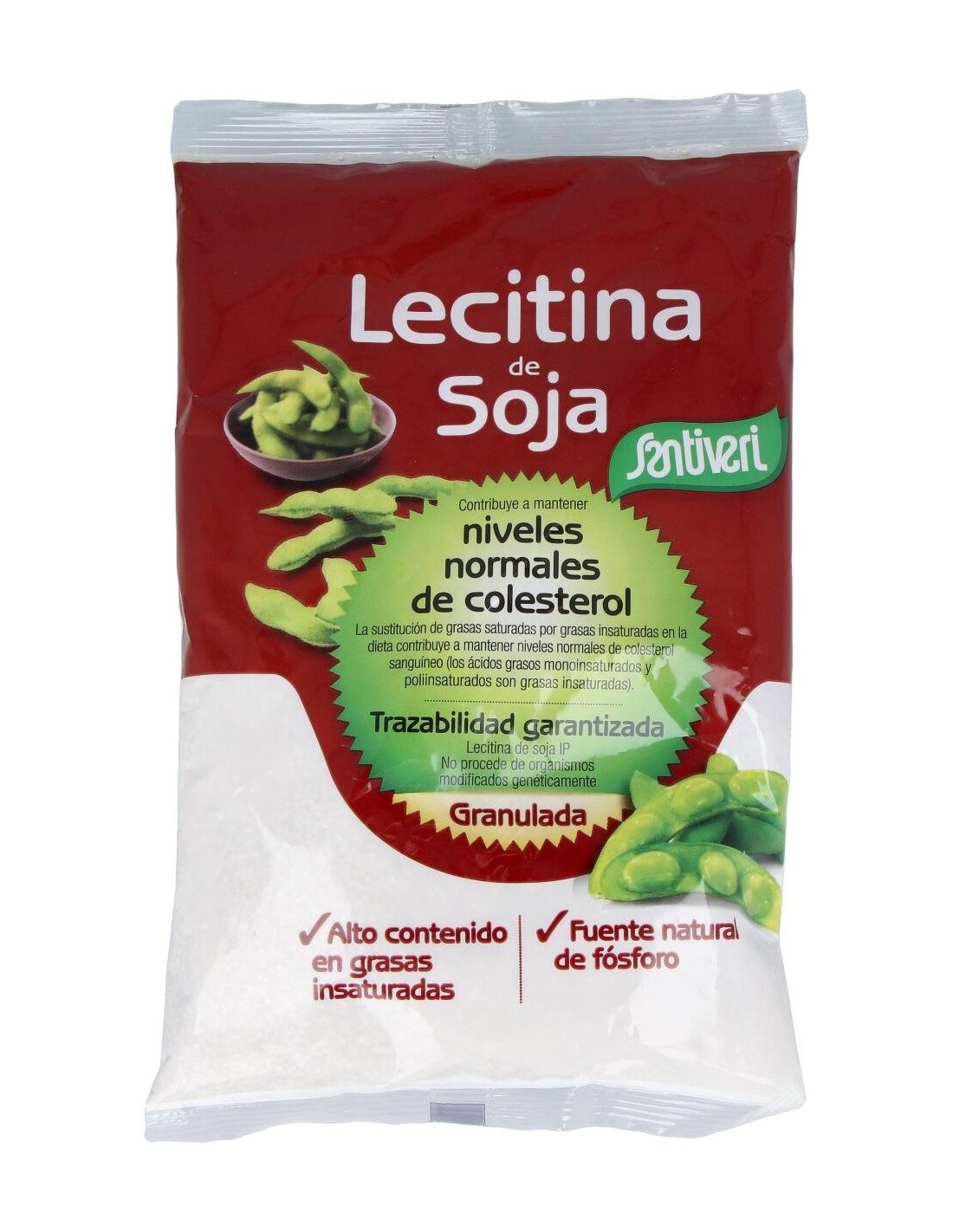 Lecitina de soja IP. Trazabilidad garantizada. No procede de organismos modificados genéticamente. La lecitina de soja es un complejo de fosofolípidos naturales aislados de la semilla de soja, principalmente fosfatidilcolina. Apto para veganos.