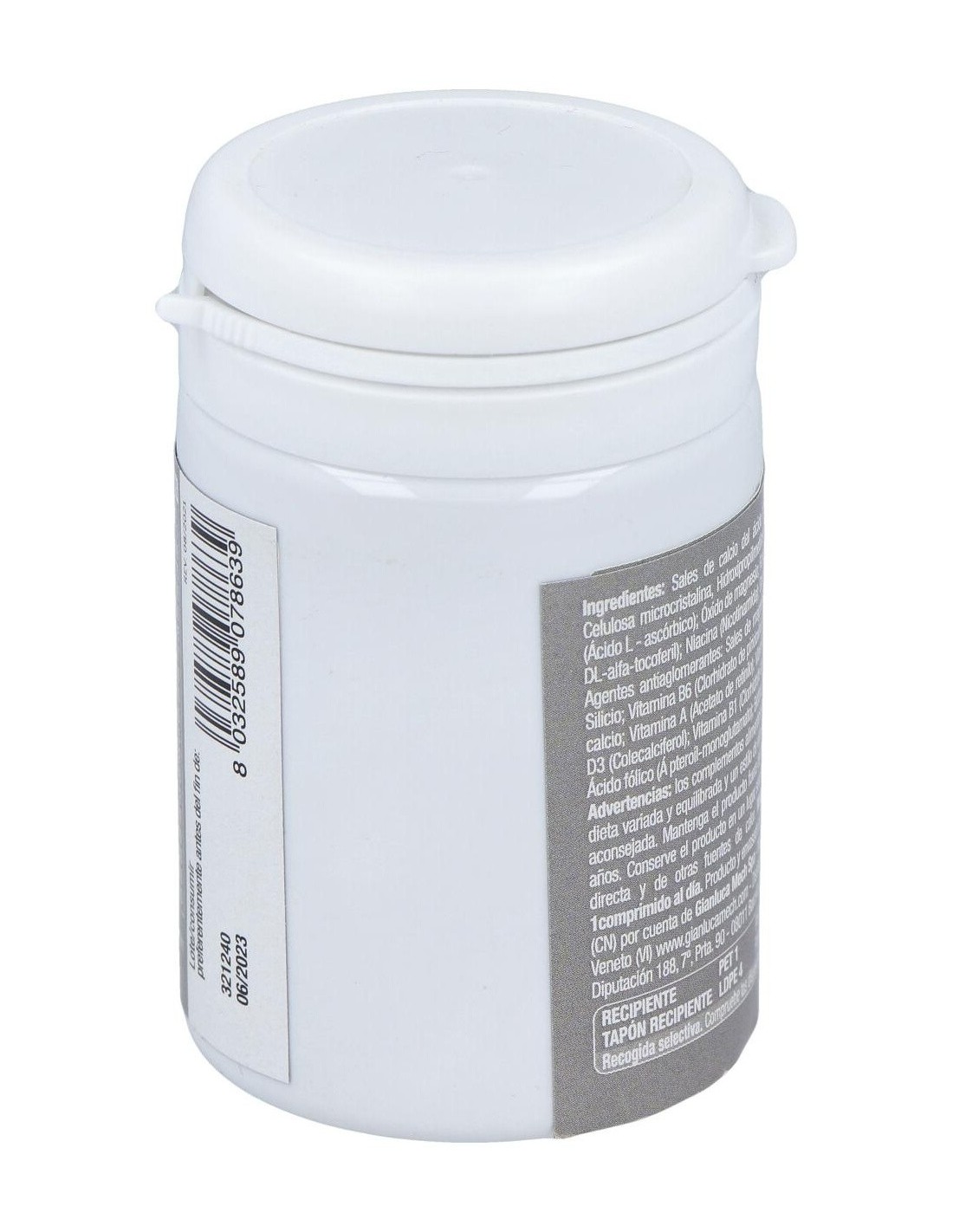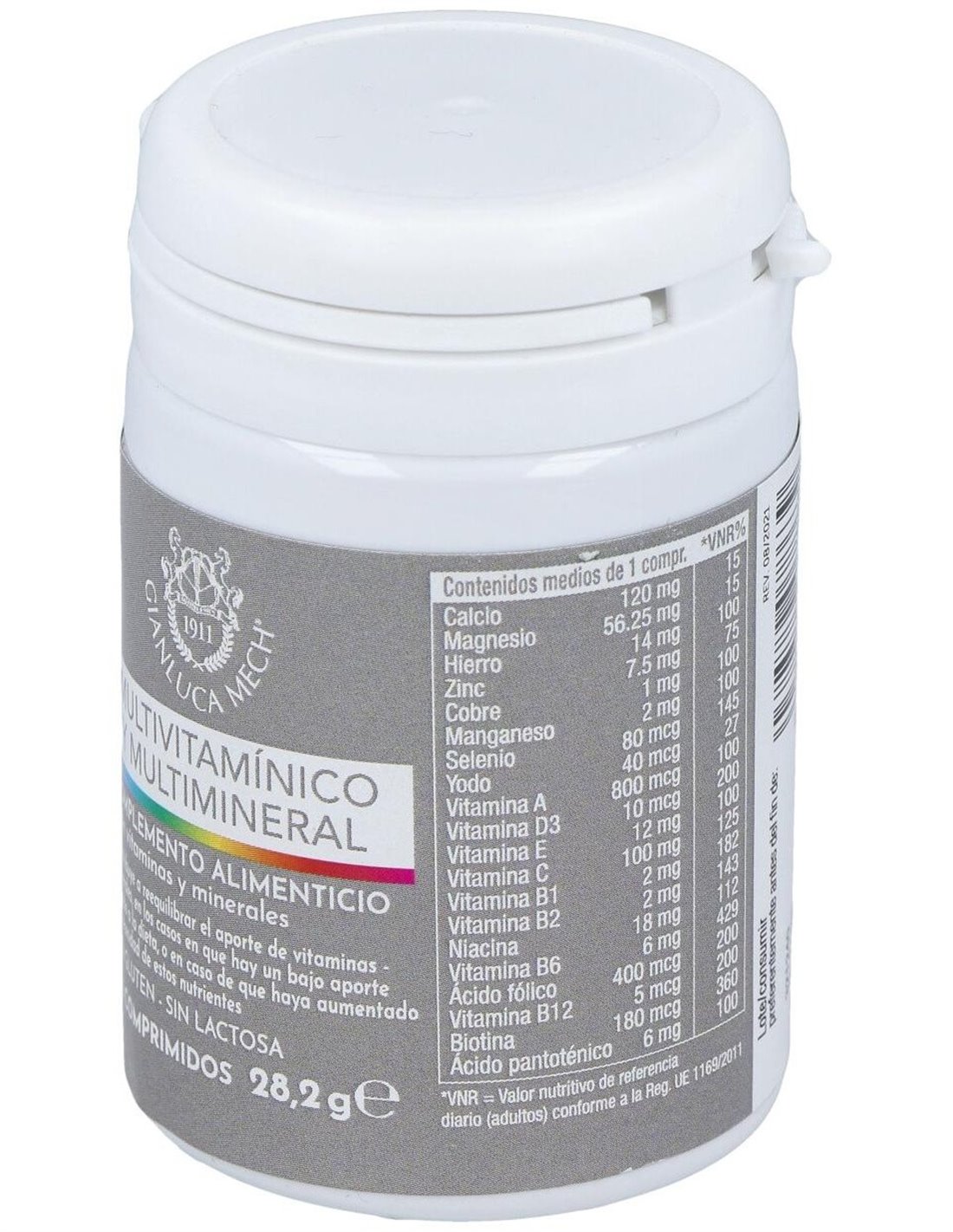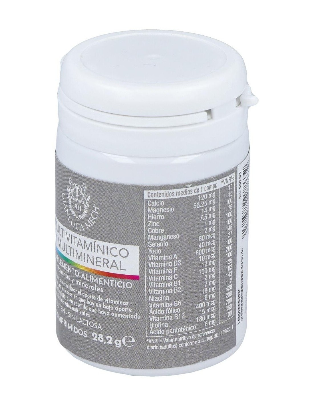 Sales de calcio del ácido ortofosfórico: Oxxynea® (Olea europaea L. hojas y frutos, Vitis vinifera L. hojas, frutos y semillas, Punica granatum L. frutas, Camellia sinensis (L.) hojas de Kuntze, Citrus paradisi Pericarpio de Macfad, Vaccinum myrtillus L. frutas, Citrus sinensis (L.) Osbeck pericarpo) e.s. tit 51% de polifenoles expresados como ácido gálico: agente de carga: hidroxipropilcelulosa: vitamina C (ácido ácido L ascórbico): Bisglicinato de hierro: Óxido de magnesio: Betacaroteno (contiene soja): Vitamina E (acetato de D-alfa-tocoferilo): caléndula erecta L. capolini e.s. tit 10% de luteína: Haematococcus pluvialis Flotow tallo e.s. tit 5% astaxantina: Niacina (nicotinamida): Gluconato de manganeso: Antiaglomerante: mono y diglicéridos. de ácidos grasos: Óxido de zinc: Vitamina B6 (clorhidrato de piridoxina): Gluconato de cobre: Pantotenato de calcio: Vitamina B12 (cianocobalamina): Vitamina D3 (colecalciferol): Vitamina B1 (clorhidrato de tiamina): Vitamina B2 (riboflavina): Ácido fólico (ácido monoglutámico pteroil): biotina: Selenito de sodio: Yoduro de potasio.