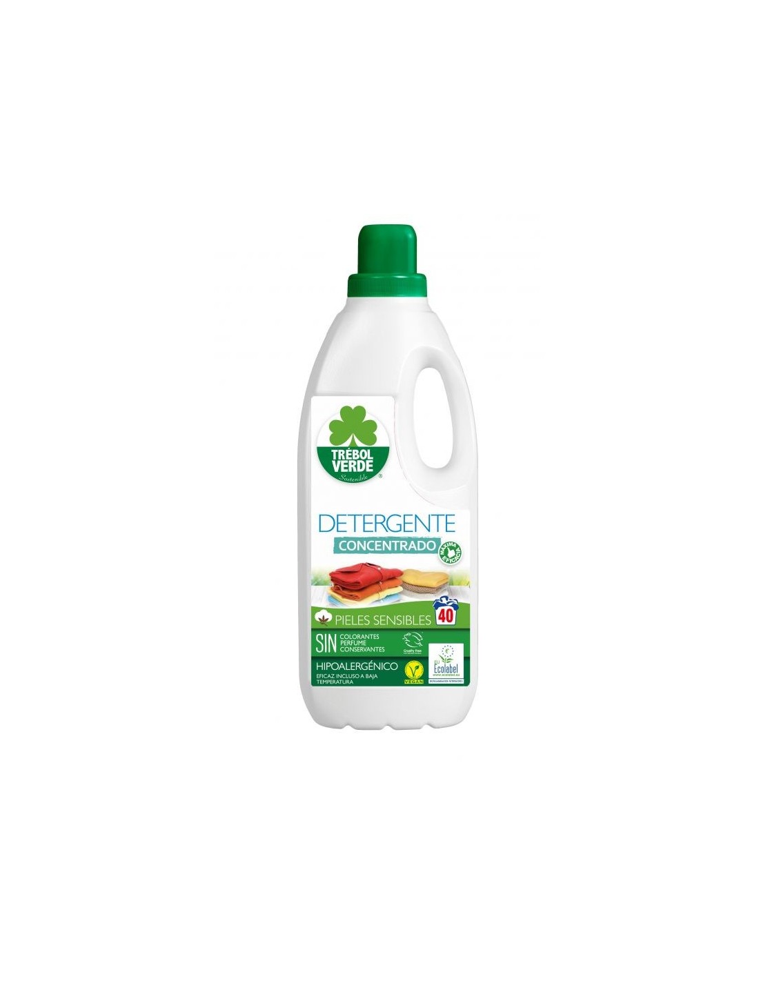 TREBOL VERDEEs un detergente líquido con garantía Ecolabel para el lavado de todo tipo de ropa, blanca y de color, eficaz incluso con agua a baja temperatura. Formulado con materias primas respetuosas con las personas y el medio ambiente, de elevado nivel de biodegradabilidad y eficacia testada. Elimina de forma eficaz las manchas más difíciles, incluso las de vino tinto, chocolate, grasa o puré de tomate, a la vez que cuida la ropa. Producto vegano.